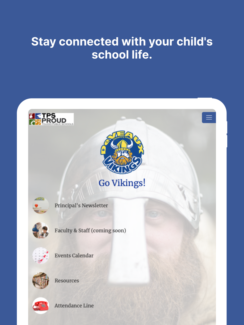 The DeVeaux app is designed to engage parents and help administrators communicate school related events and activities. Parents will be able to access information much quicker and administrators will be able to provide information with ease. DeVeaux is part of the TPS system.