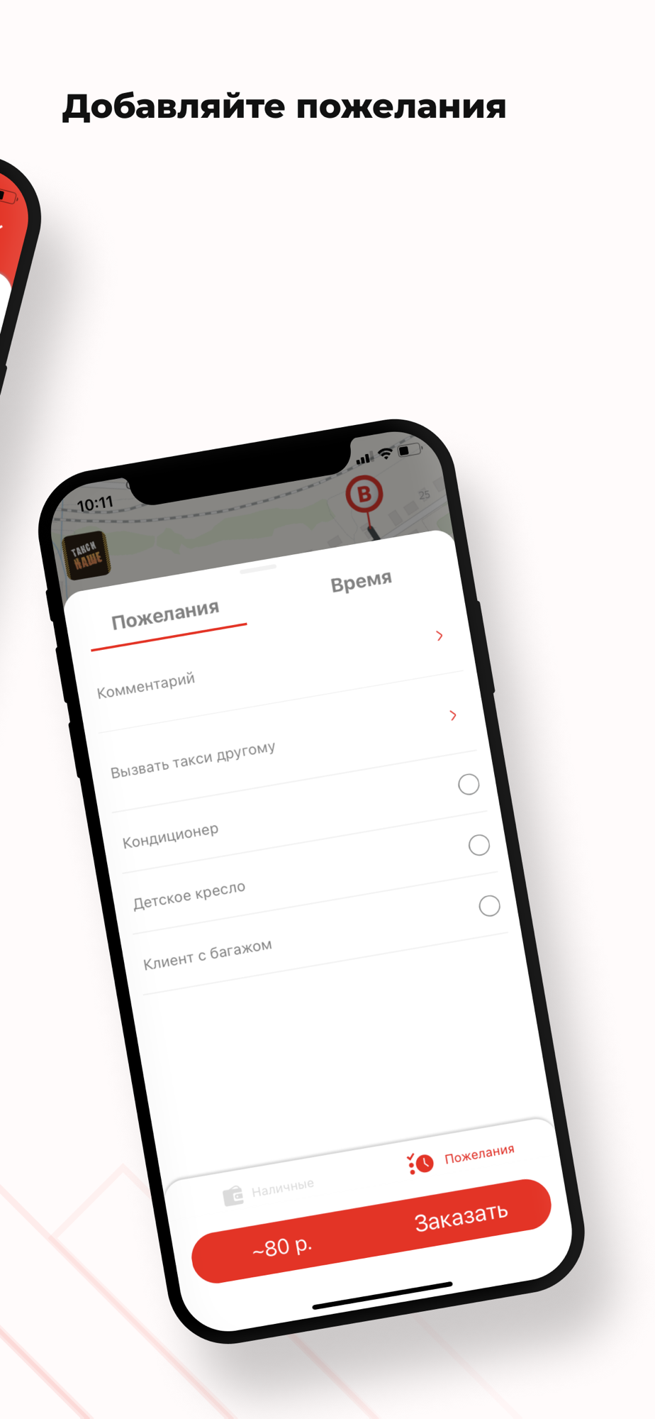 Добавьте к заказу дополнительные пожелания. Например, когда на улице +35 — выберите "кондиционер". Если вы не переносите запах табака — укажите "Некурящий салон", и к вам приедет некурящий водитель.