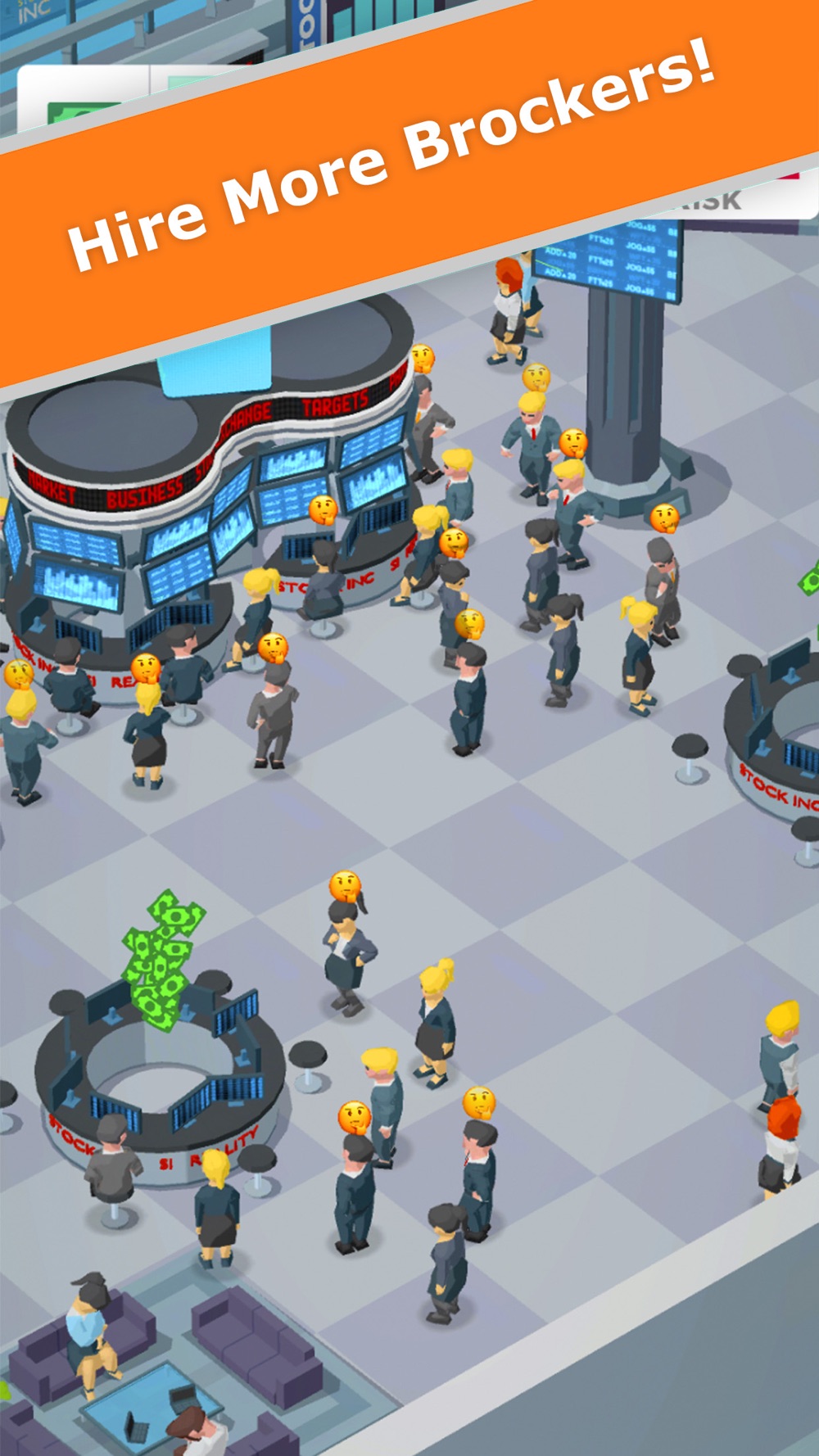 Welcome to the most exciting tycoon game! Now you have become the boss of the huge Stock Inc company!
