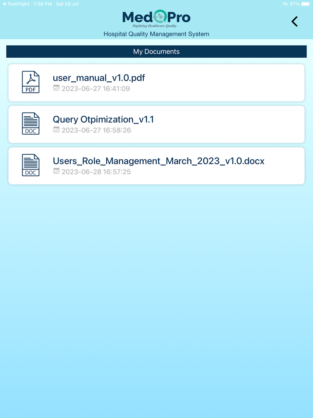 MedQPro is India’s first JCI and NABH Compliant healthcare QMS Software Solution, designed and developed by leading JCI and NABH Accreditation consultants of the country. MedQPro Solutions helps hospitals and healthcare systems achieve operational excellence and efficiencies through the automation of quality workflows and processes to support accreditation and standards requirements as well as ultimately improving patient safety and care.