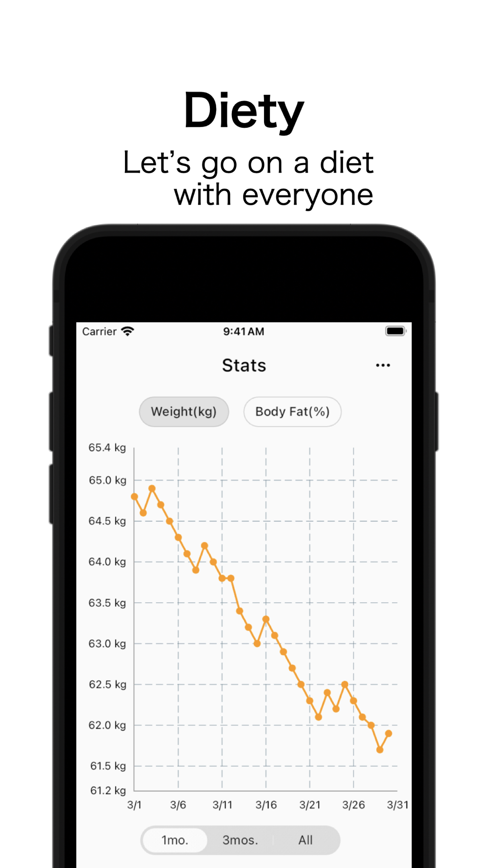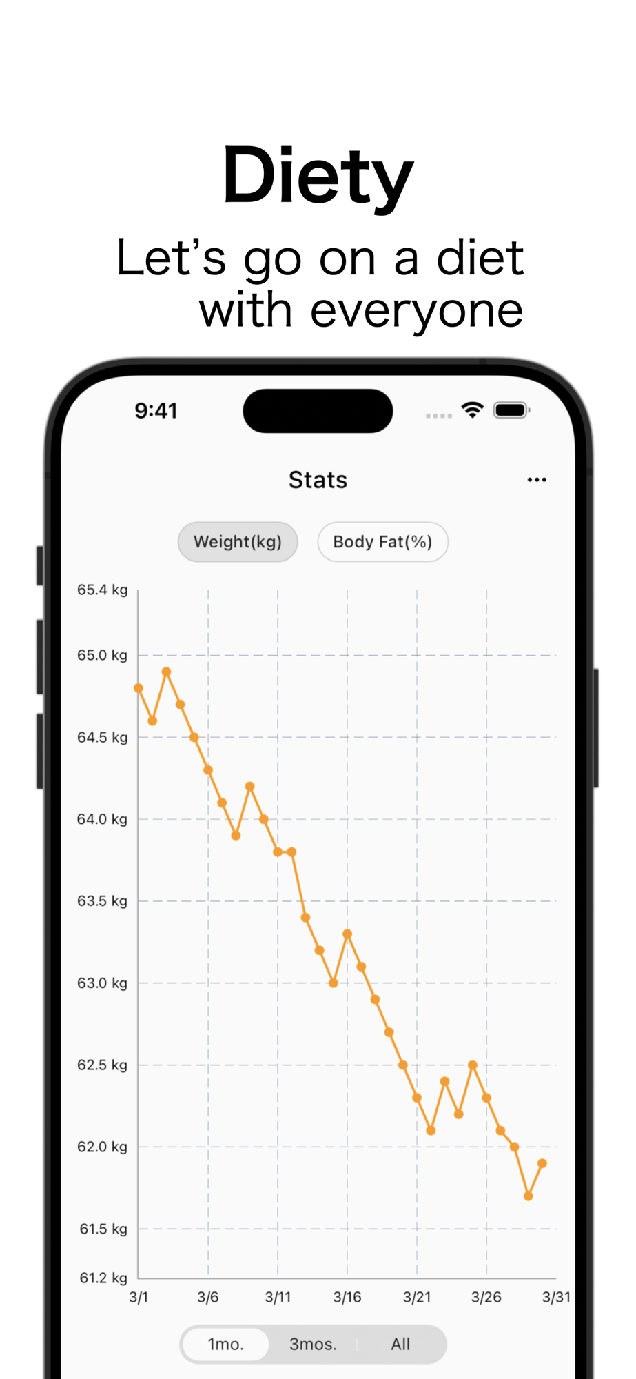 This app make a graph how many kilograms have changed since you started your diet and will be shared with everyone who is on a diet together!