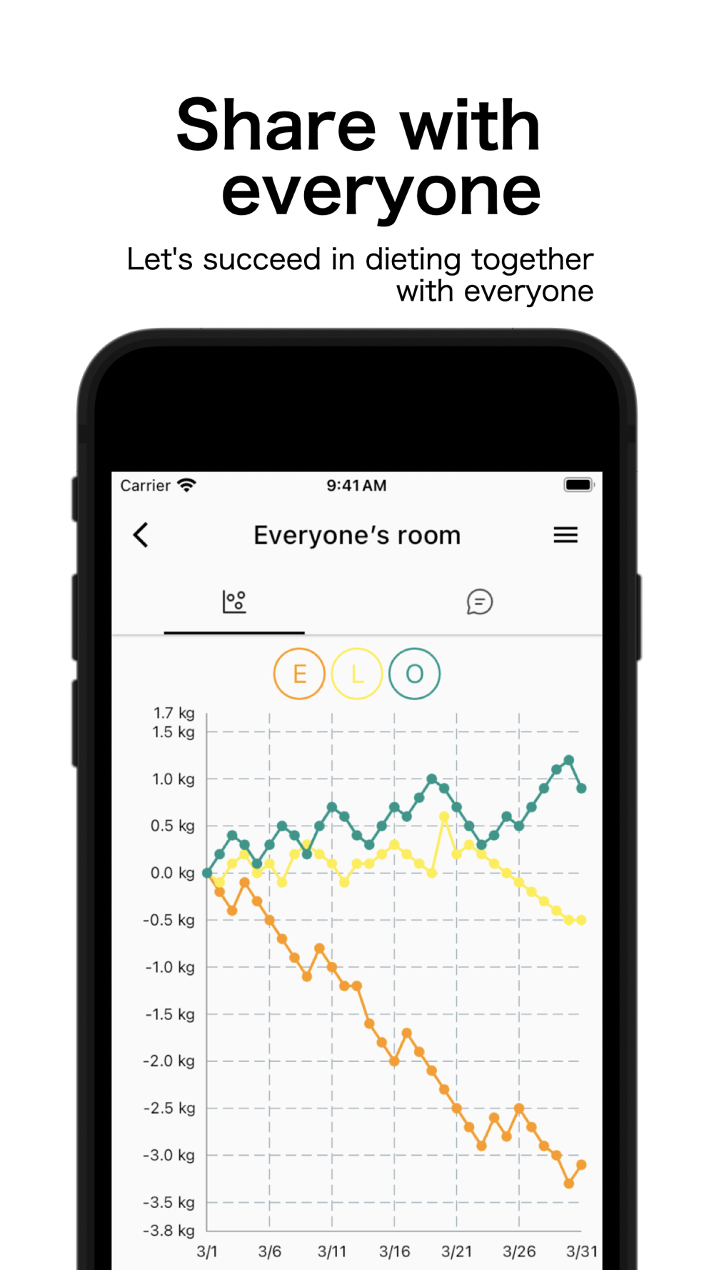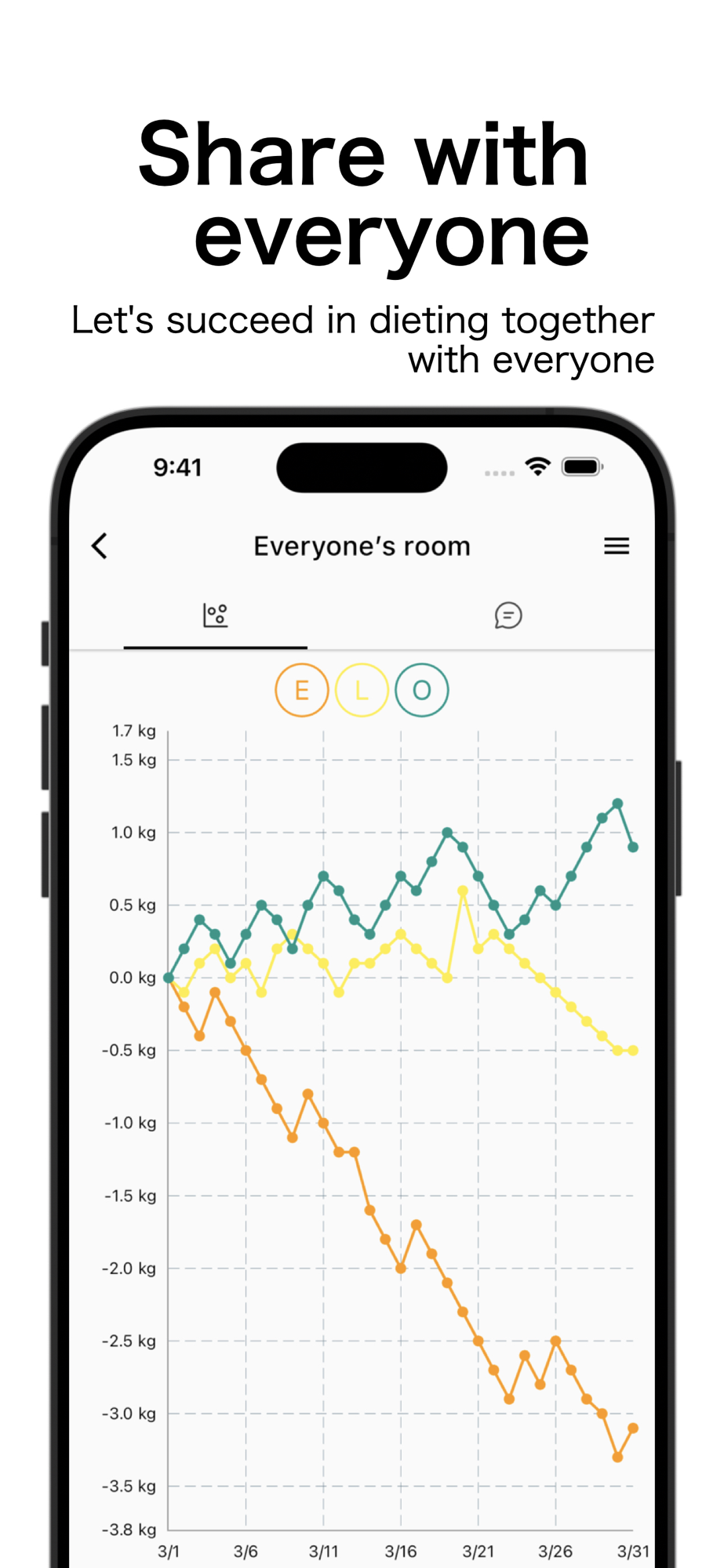This app will be automatically graphed and shared with everyone who is on a diet together!