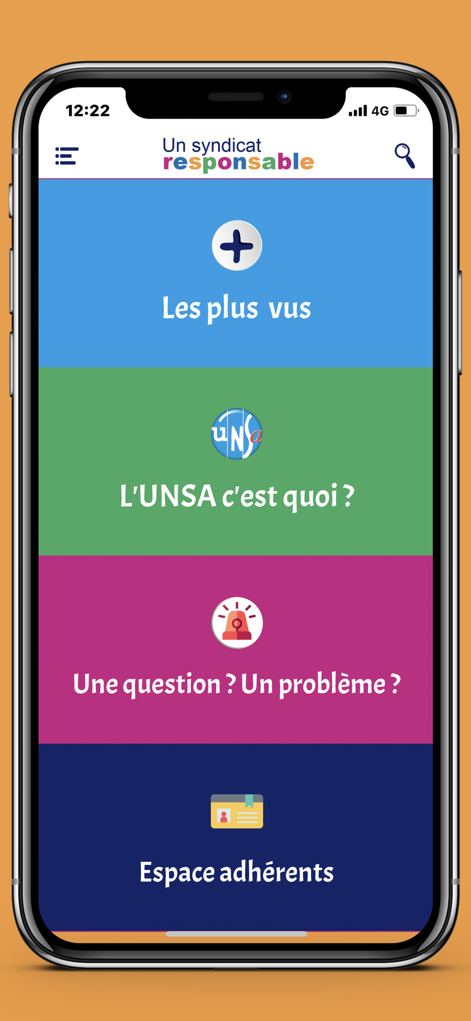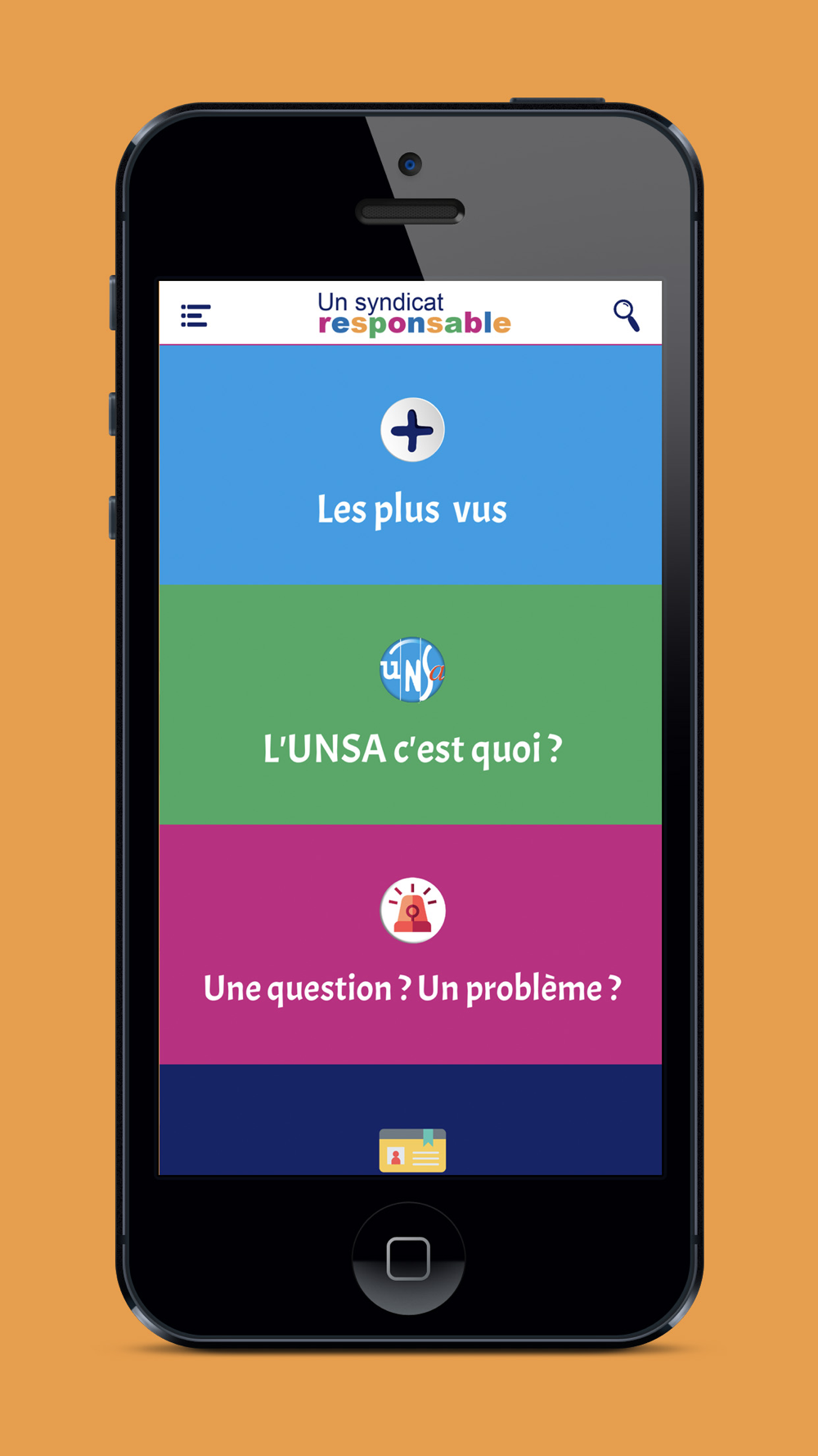 Téléchargez l’application, puis inscrivez-vous sans engagement. Vous aurez désormais au creux de la main une application rapide, intuitive et facile d'utilisation, à utiliser-le sans modération ... Vous deviendrez ainsi contributeur des actions de l’UNSA dans votre entreprise !"