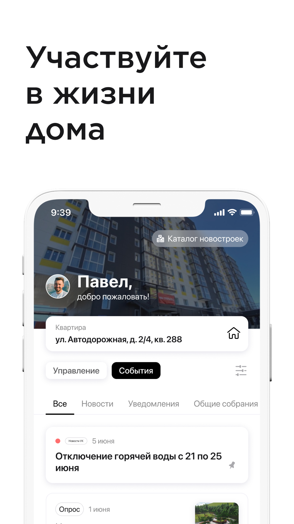 Участвуйте в собраниях собственников, обсуждайте инициативы и голосуйте через приложение.