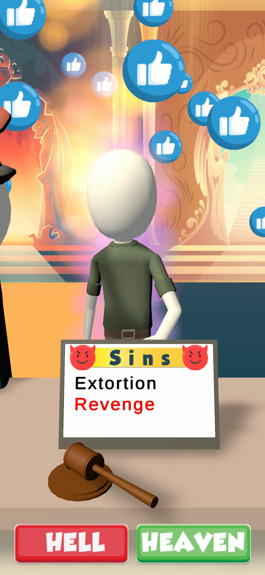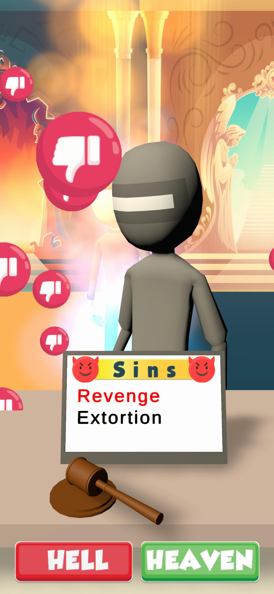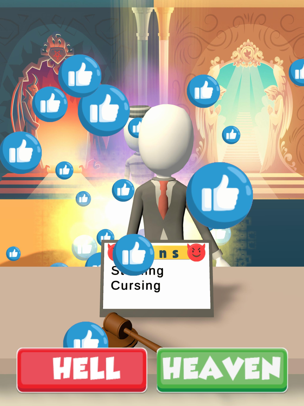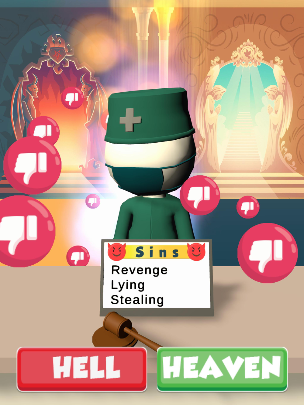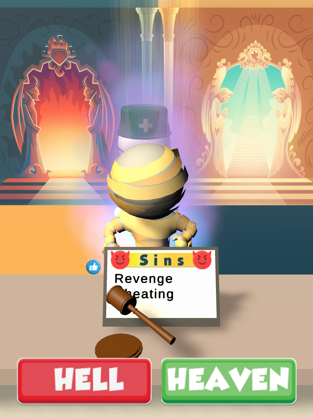 Bring justice to the world by ensuring good people go to heaven and bad people go to hell. Swipe right to send innocents to heaven and left to send sinners to hell. Punish sinners by throwing objects at them.