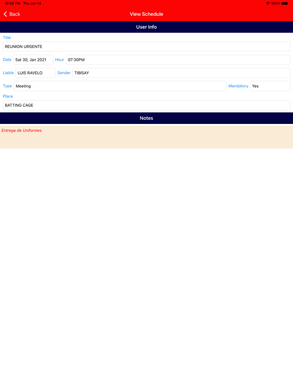 With this app, you can see the schedule assigned to players, also you can see meetings, calendar games, sport news, notifications, payments, and more.