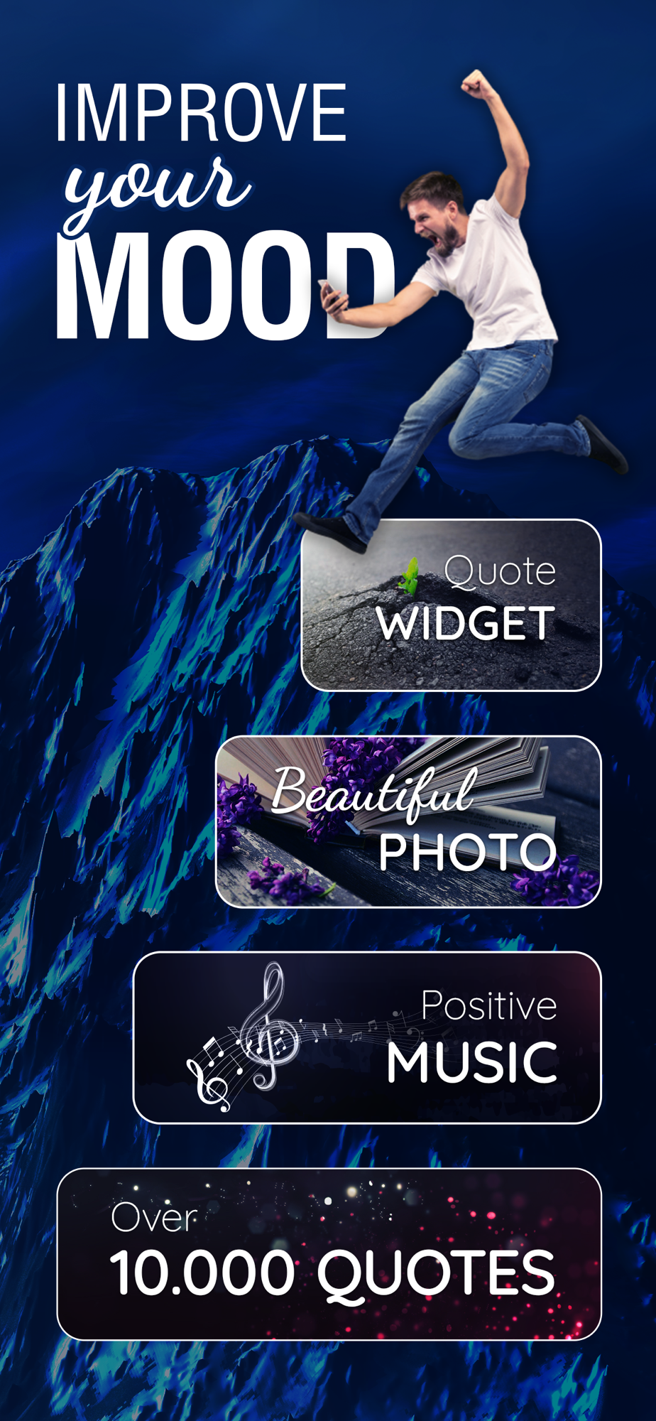 2) MOTIVATIONAL SONGS: Music will magically Lift up your mood. Each quote will come along with a different song for you.