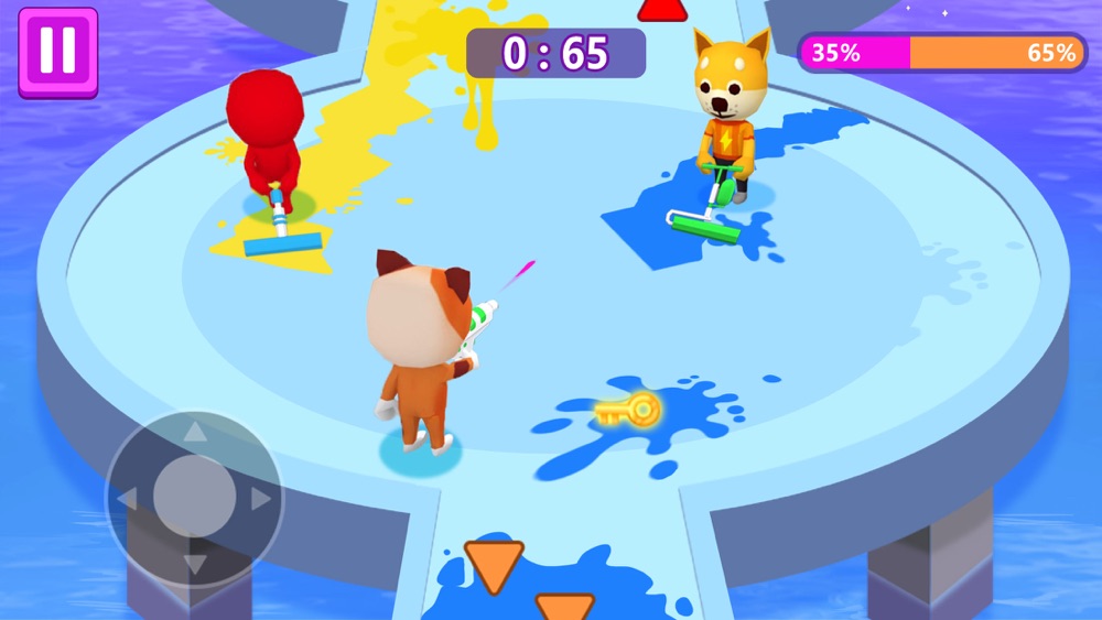 配合你的队友,在地上喷涂自己的颜色标记,作为自己的地盘,还可以在恰当时机将敌人推入海中。