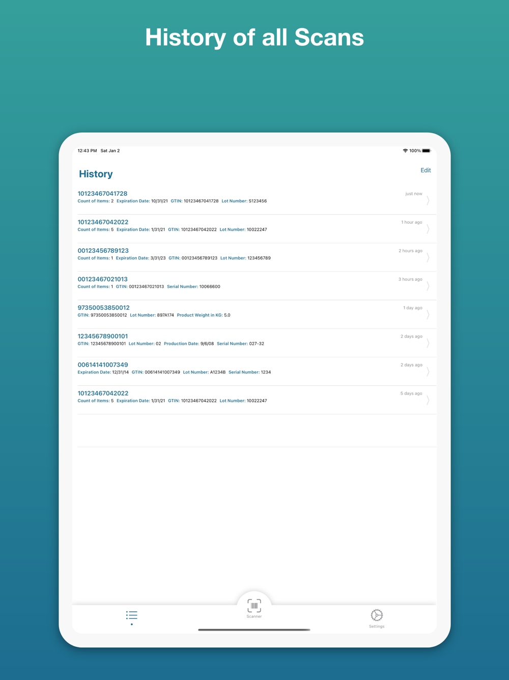 The App will show the contents of any GS1 Barcode, like the GTIN, Expiration Date, Lot or Serial Number. These barcodes are often used on products in B2B areas like the healthcare industry. Have a history of all scanned barcodes and share them with other applications or people, by using the Pretty GS1 Scanner.