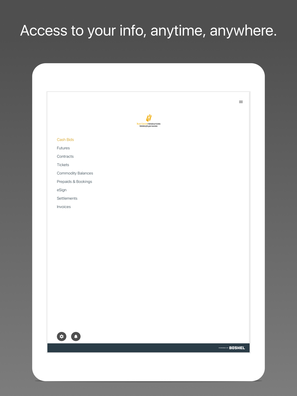 The Horizon Resources app is free, secure, and developed by the industry-leading Bushel platform.