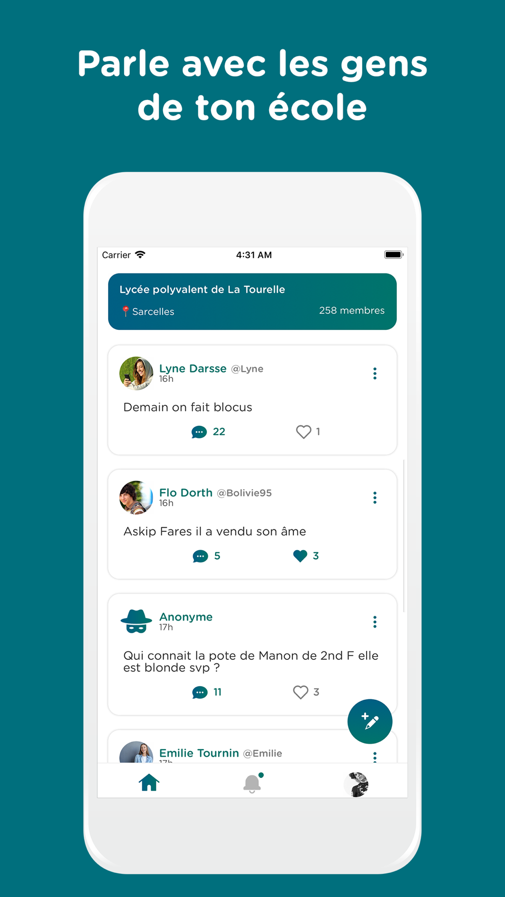 Tu peux t'exprimer librement en créant un post, tous les gens de ton collège ou lycée pourront voir ton post. Tu es timide ? Tu peux poster en anonyme