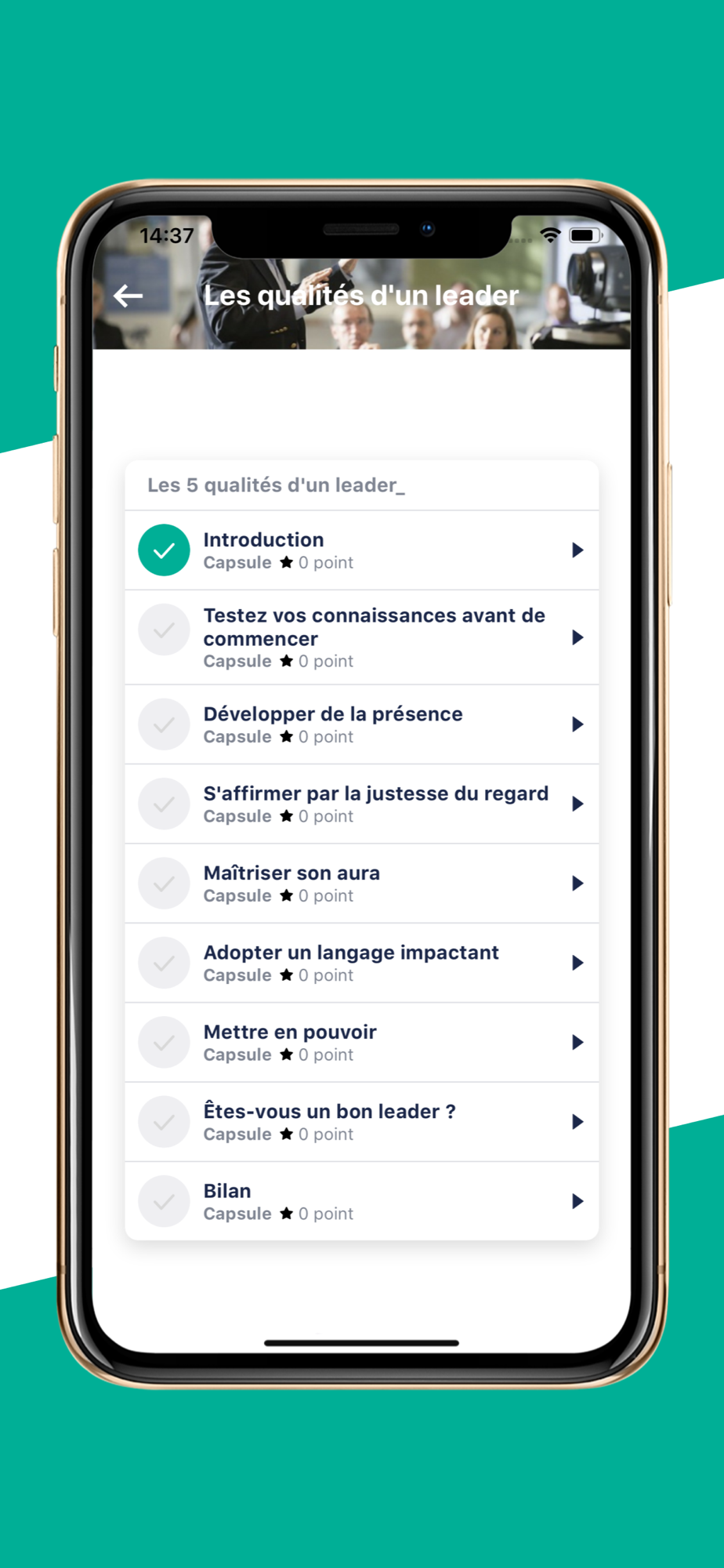 Que vous soyez dans le métro, entre deux rendez-vous ou au bureau, accédez à l'ensemble de vos capsules, jouez et testez vos connaissances via des quiz.