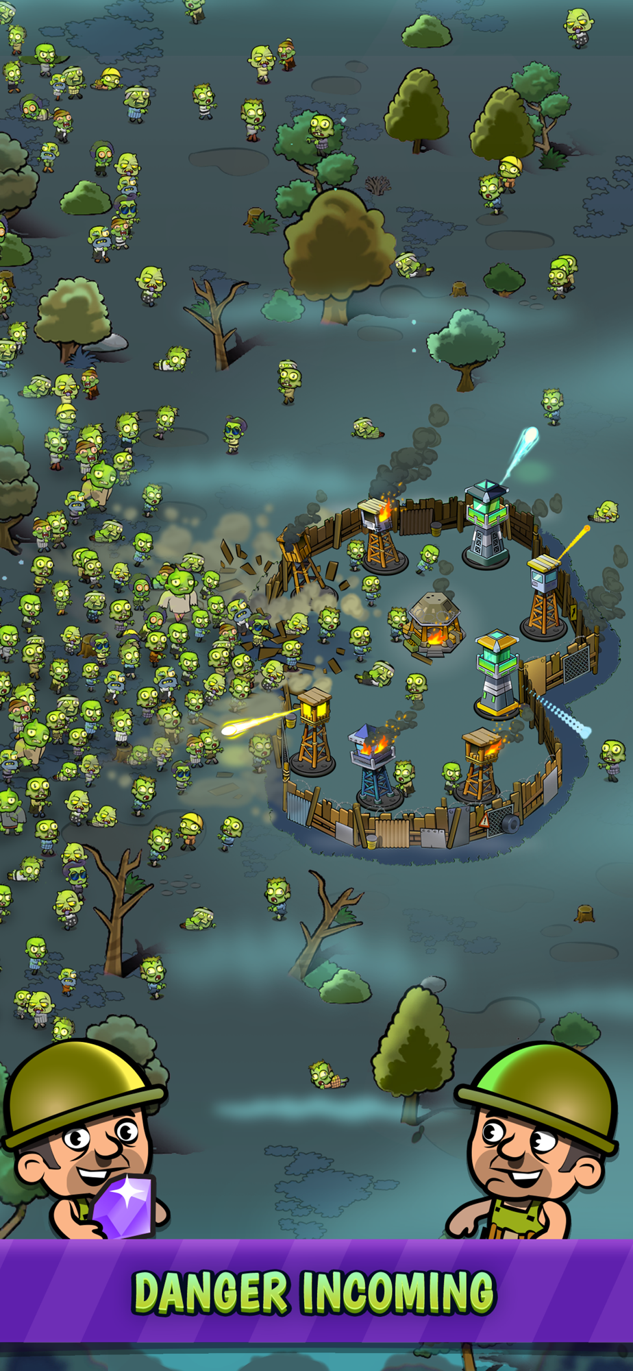All eyes of the world are looking at this small outpost in the woods. As zombies crawl towards you you need to build and merge towers, upgrade them and prepare the nukes to fight agains evil zombies. Those creatures will tear as apart if we let them across the wall. Be aware of the mutant zombies, cause they can breach the wall and in- danger the human kind. Put more barb wire, spikes and even tyres on the wall to protect us from this evil zombies.