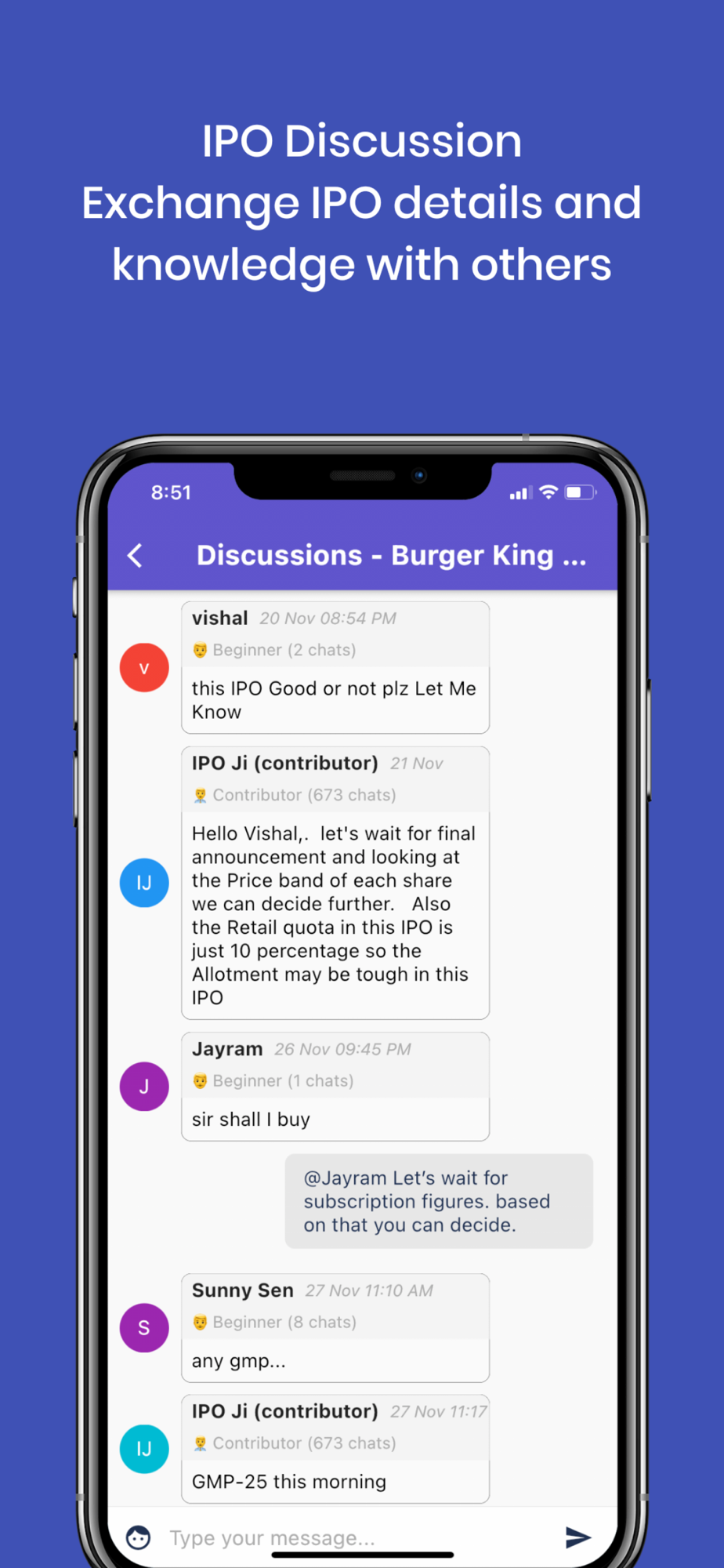 The Messaging Feature of our app takes you to a discussion forum, where you can discuss IPO and get guidance from experts.