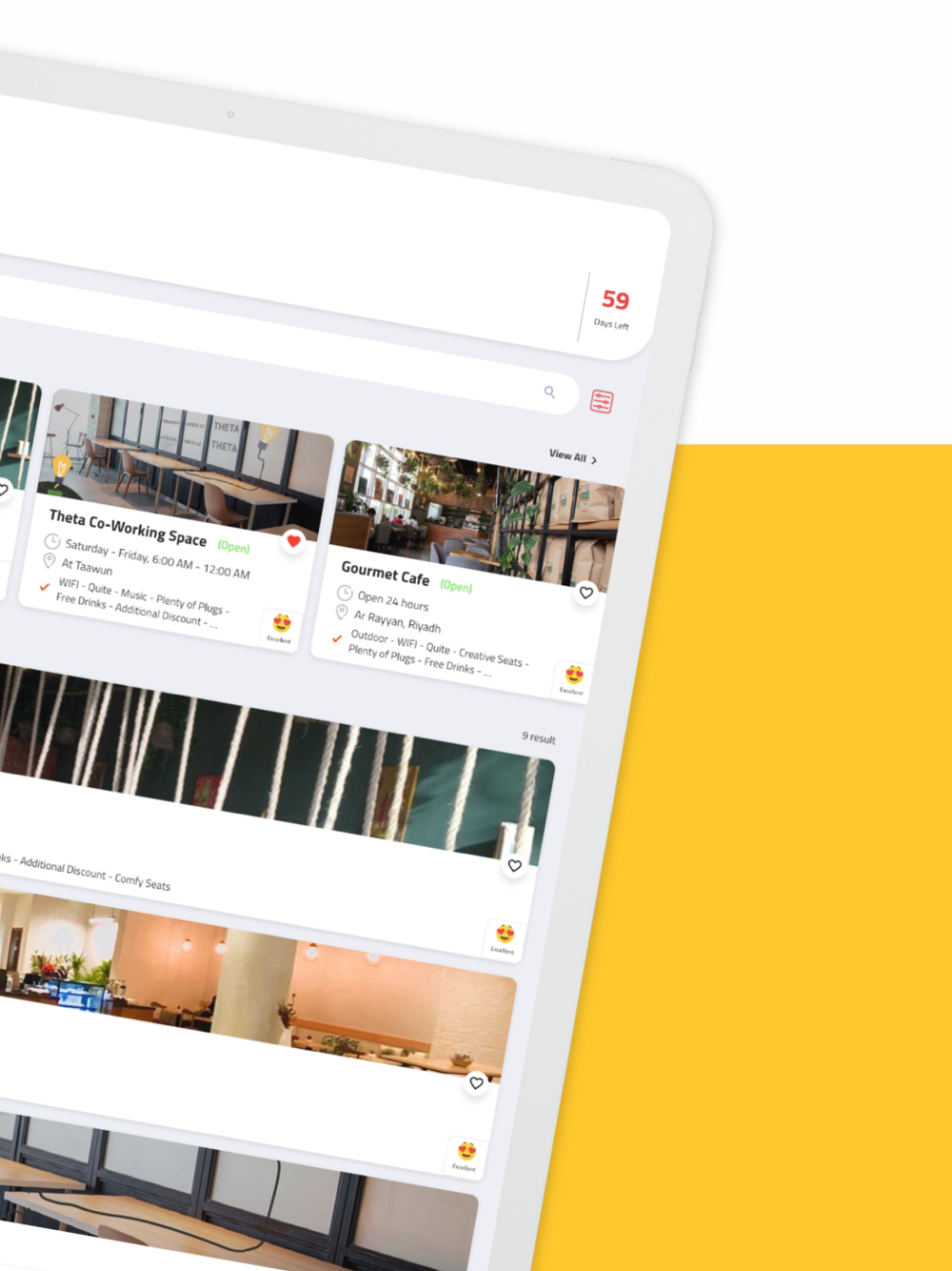 Working at the same desk or from home isn’t fun and decreases your productivity! Search in the growing list of places and cafes now in Riyadh and soon across the kingdom.