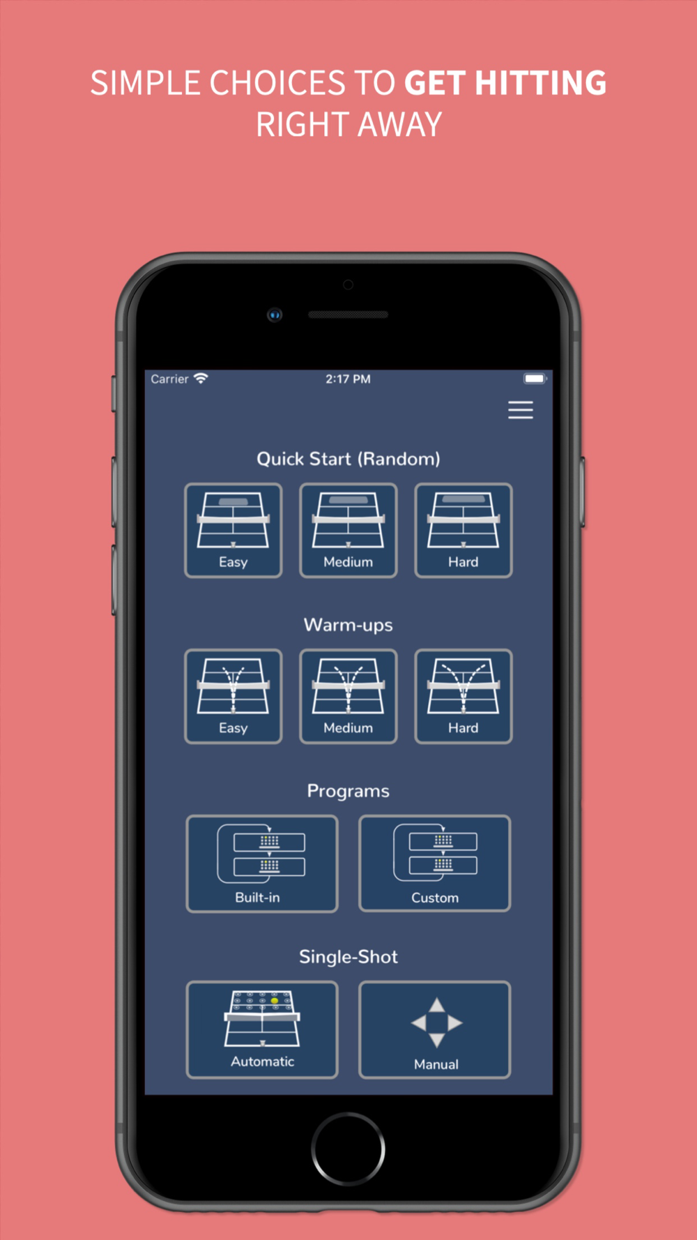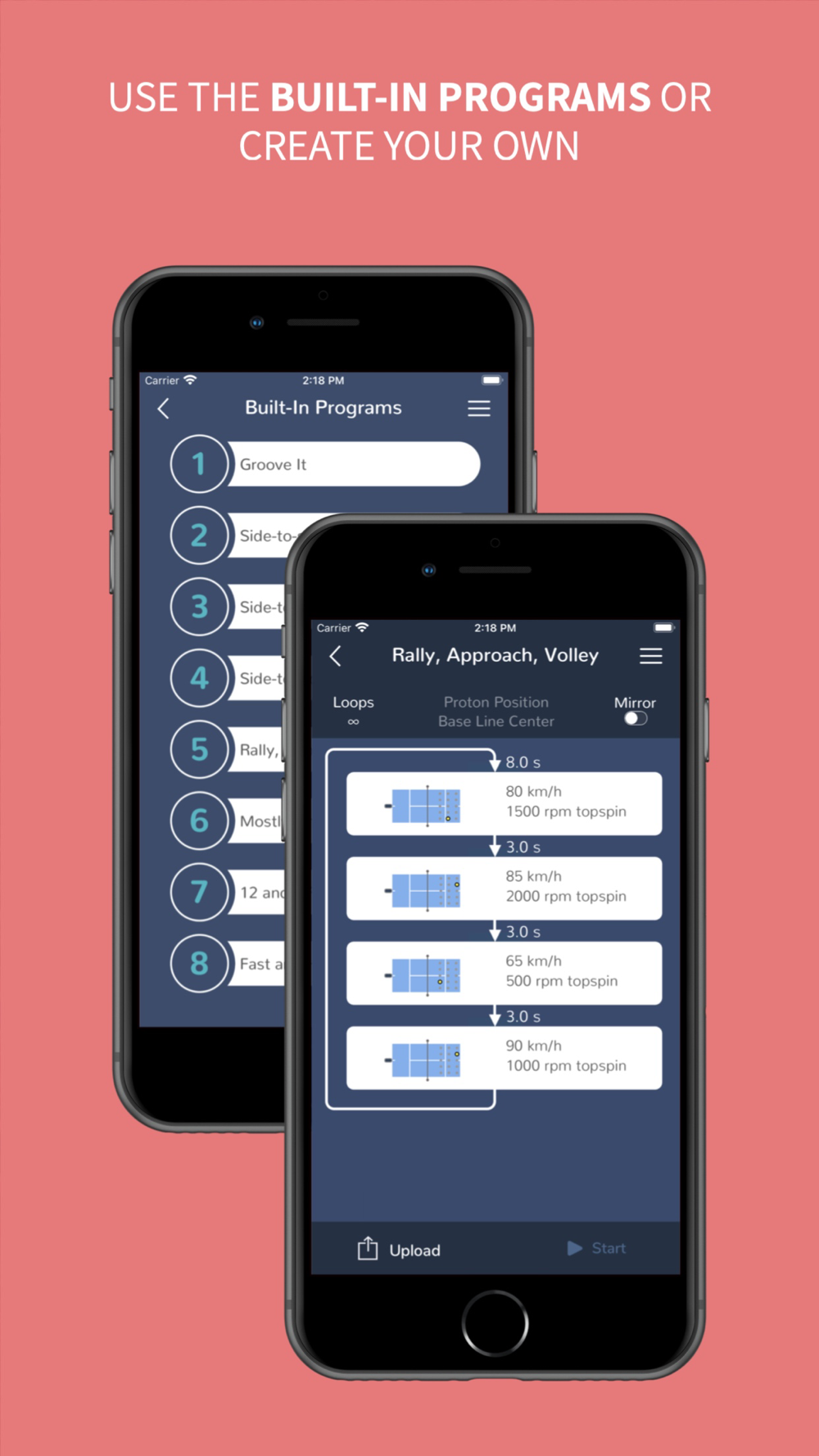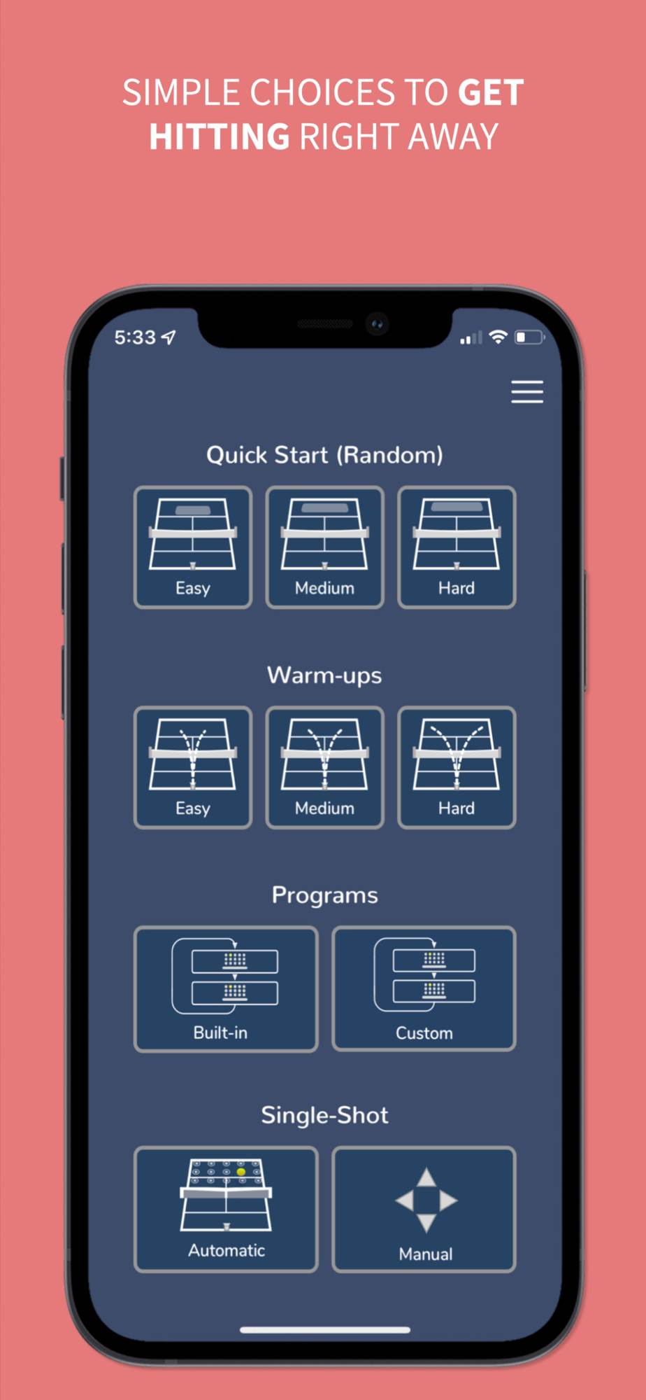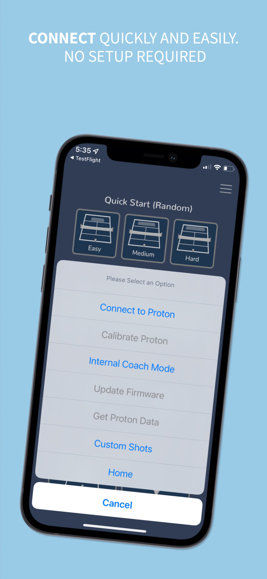 Proton Control pairs wirelessly with your Proton to enable remote control and programing of your ball machine. Inside the phone app you can access built-in training routines and easily create your own custom shot sequences. The Apple Watch app allows control and execution of saved shot sequences without your phone. A Proton ball machine from Hydrogen Sports is required for use.