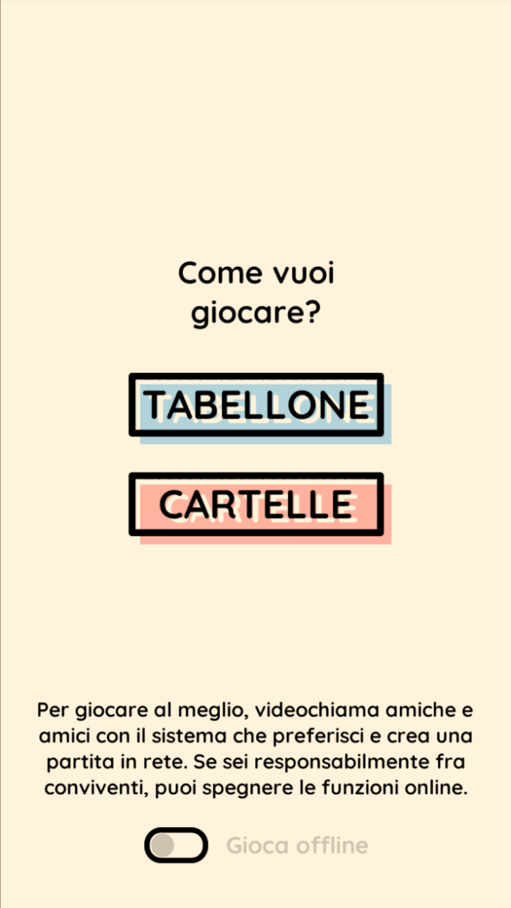 Selezionando "Gioca offline", avrai delle semplici cartelle e un tabellone, tutto in digitale, anche senza connessione internet.