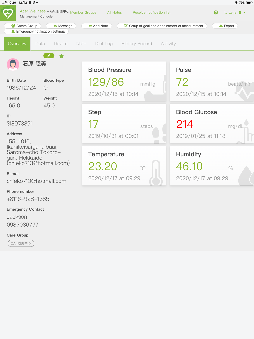 Acer Wellness care, provided by Acer incorporated of seeking to enhance the telemed experience through providing smart, cloud-based remote care services. Through the use of Bluetooth devices, physiological data can be easily and passively collected and monitored remotely by designated caretakers, allowing them to then offer next level service and care.