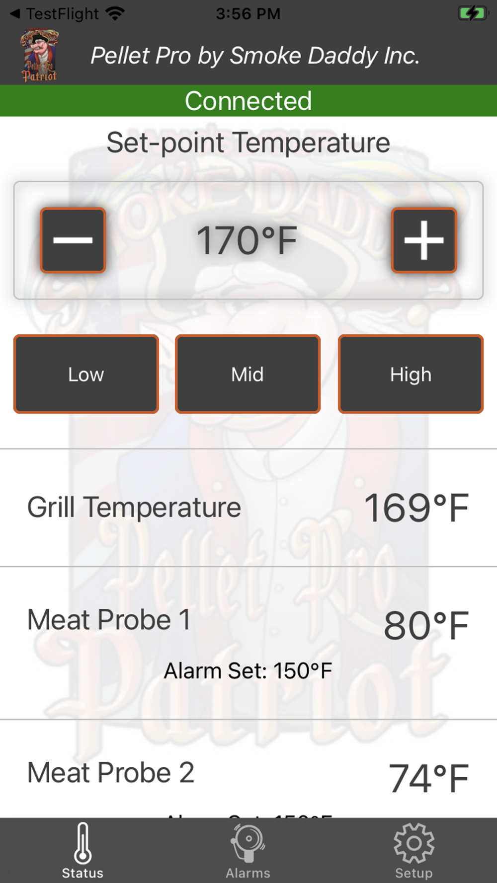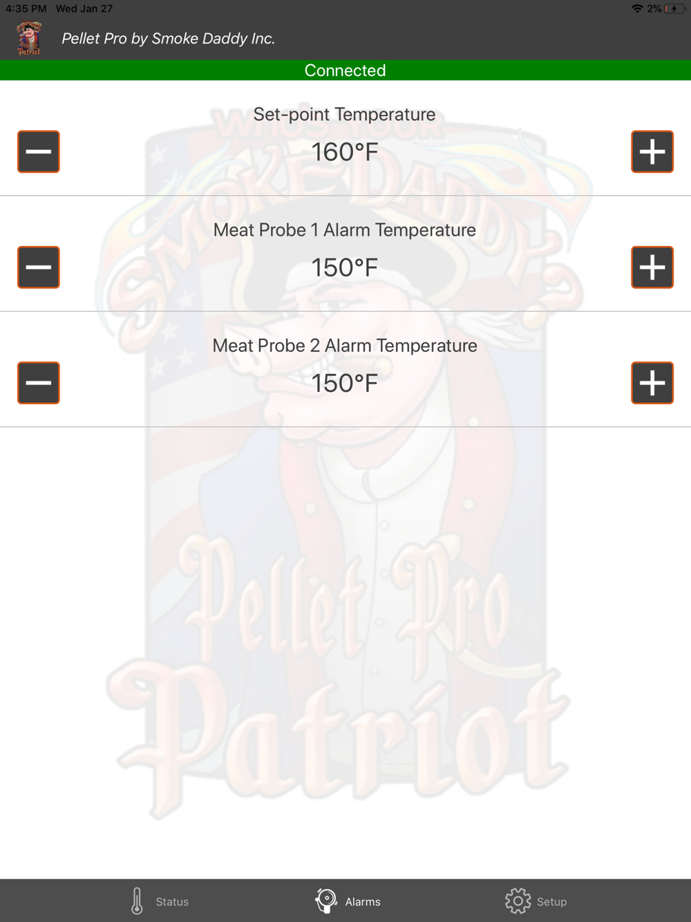 Monitor and control the temperature of the Pellet Pro® WiFi Pellet Grill Controller using your iOS device within a home network. Convenience and reliability not available with other pellet grill brands. In addition, you can monitor the meat probe temperatures and set alarms!