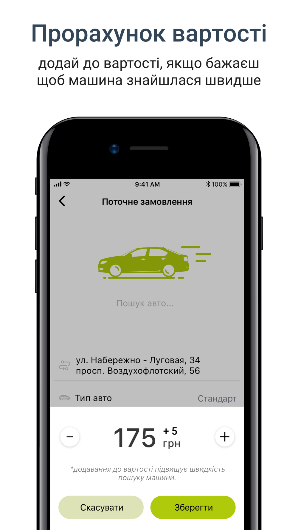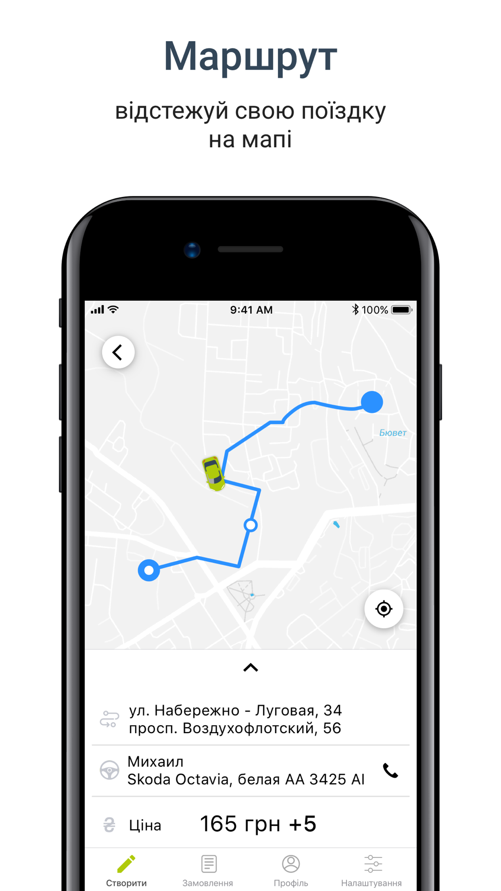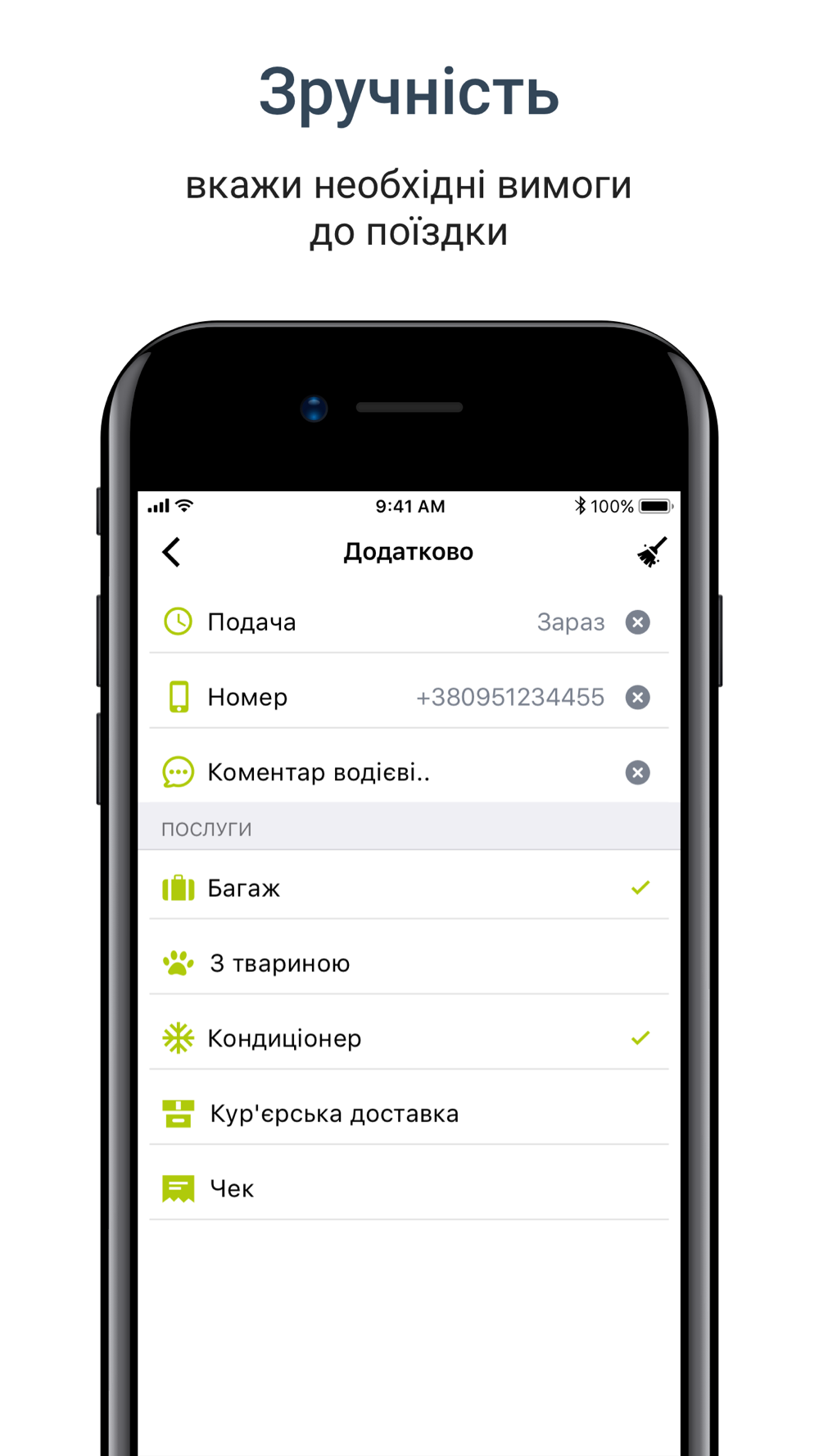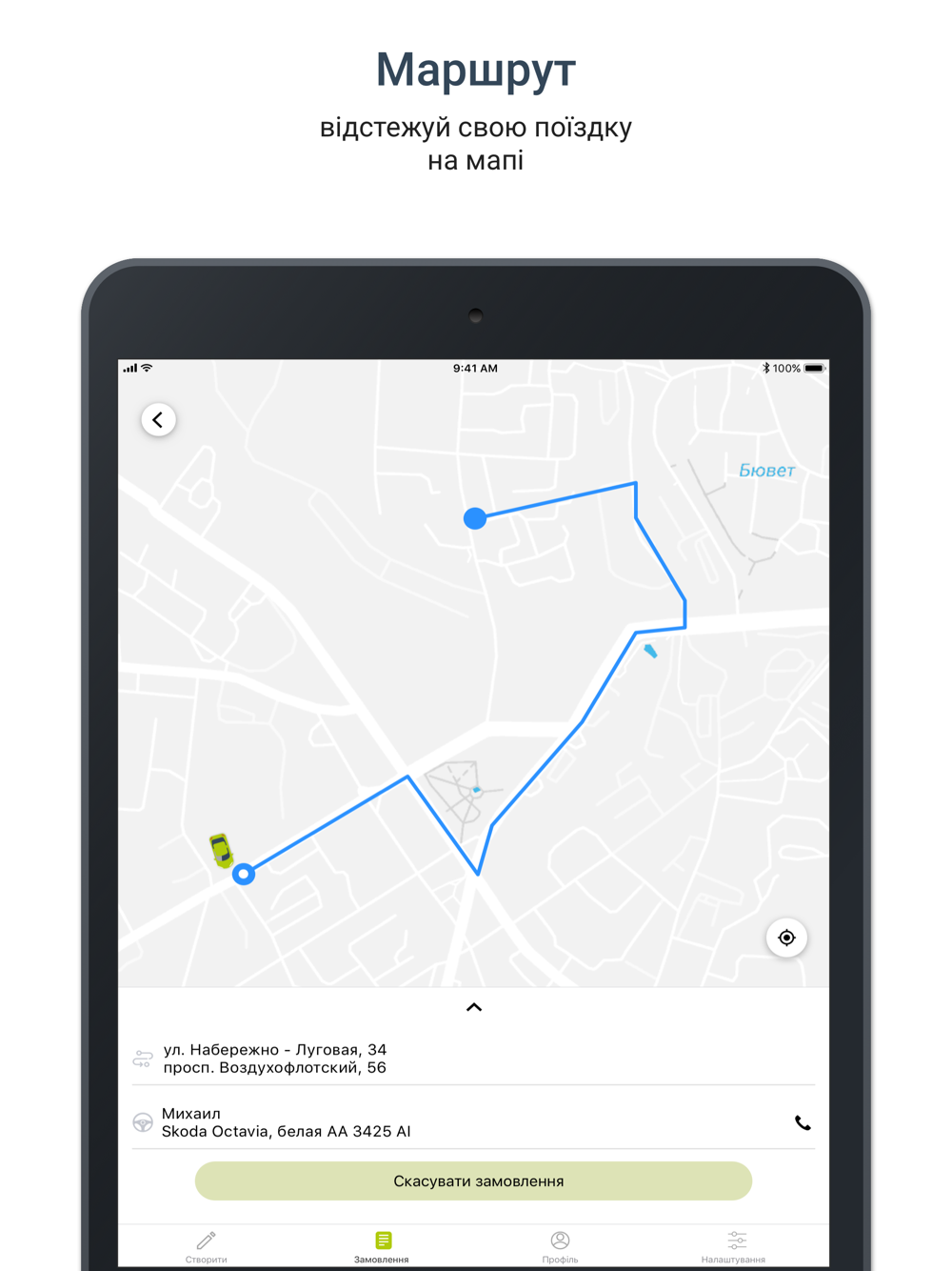 - замовлення таксі через додаток;