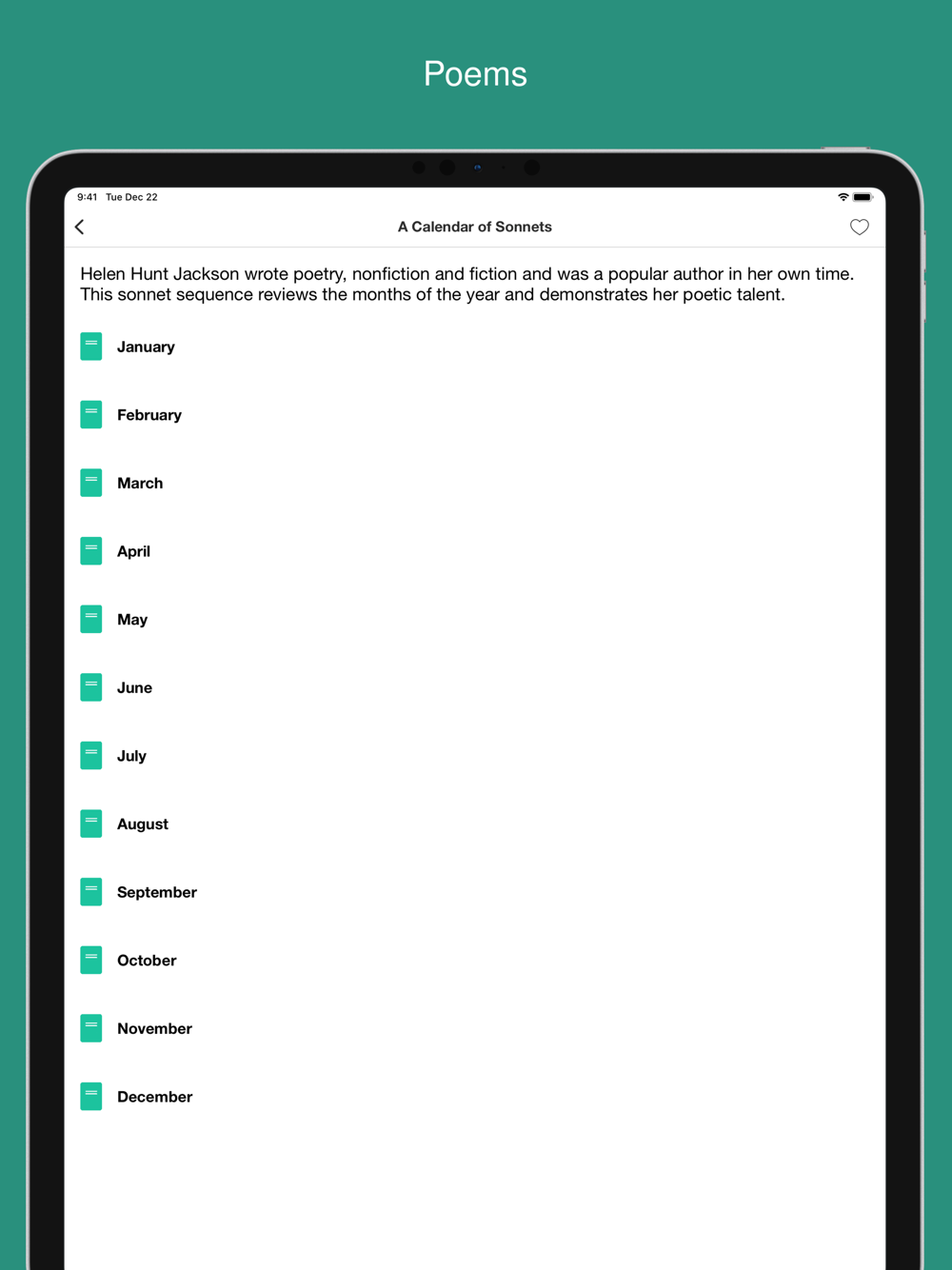With read along feature, you can enjoy your favorite poems by reading or listening or both reading and listening.