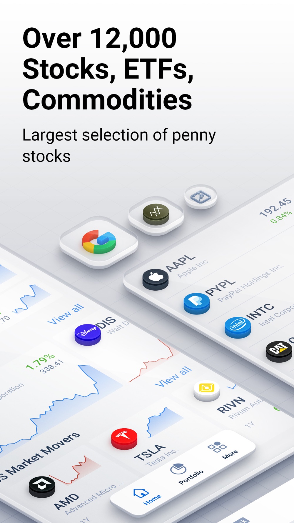Begin investing in over 3,000 US stocks, ETFs (Exchange-Traded Funds) with one of the lowest stock commissions on the market! Diversify your investments with multiple other instruments without monthly fees.