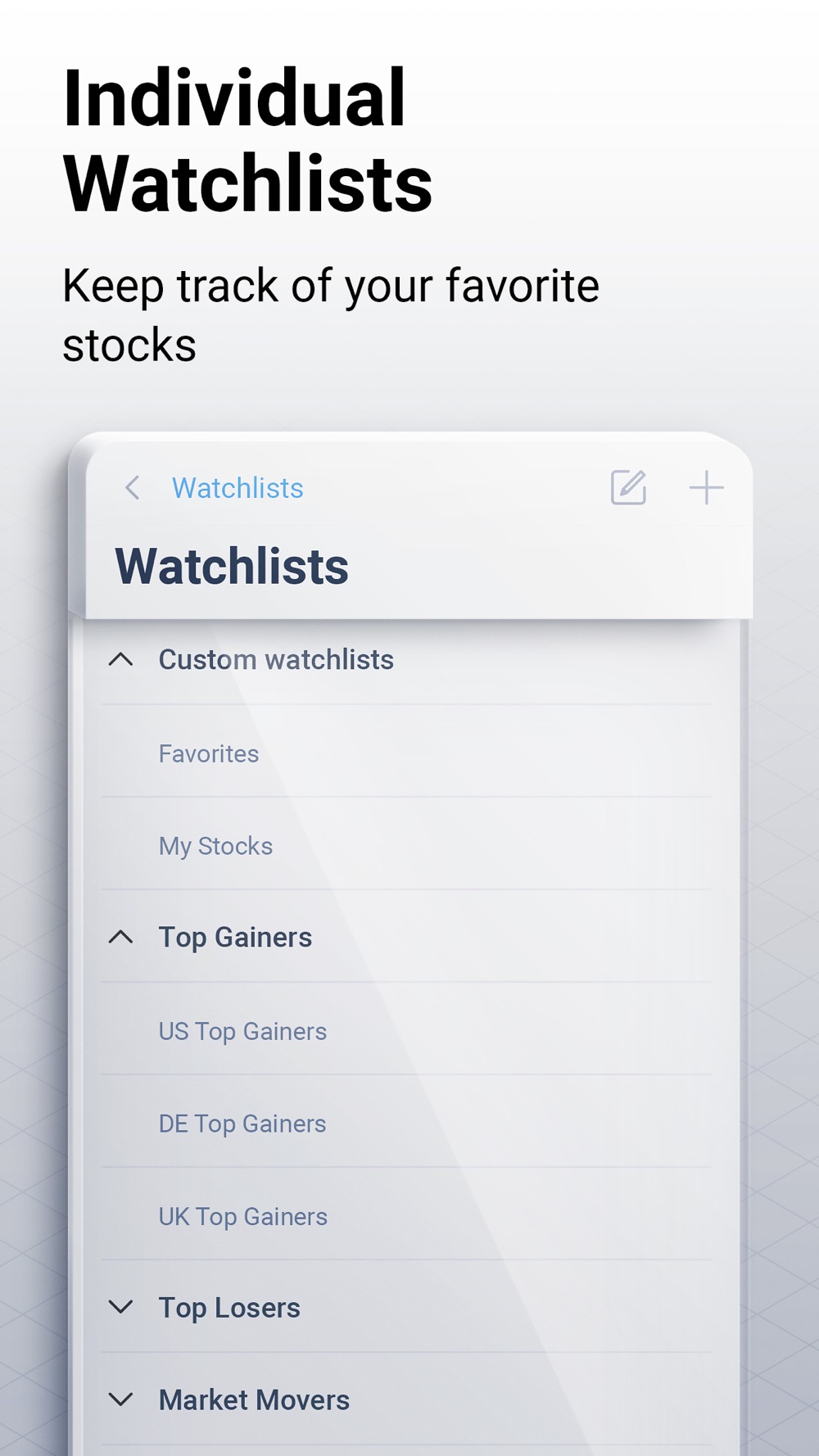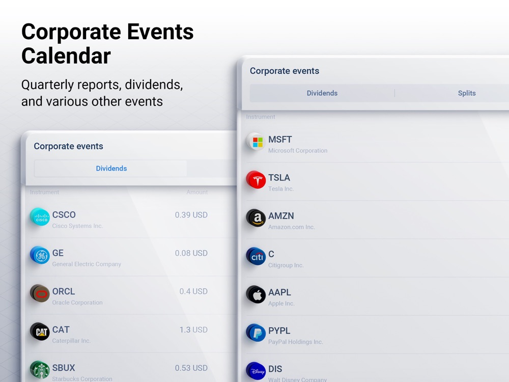 You will have access to reliable market data, visually appealing live stock charts to easily find any patterns, a corporate actions calendar, popular trading economic indicators, and other tools to help you invest confidently. Start stock trading now and explore all the features our app has to offer.