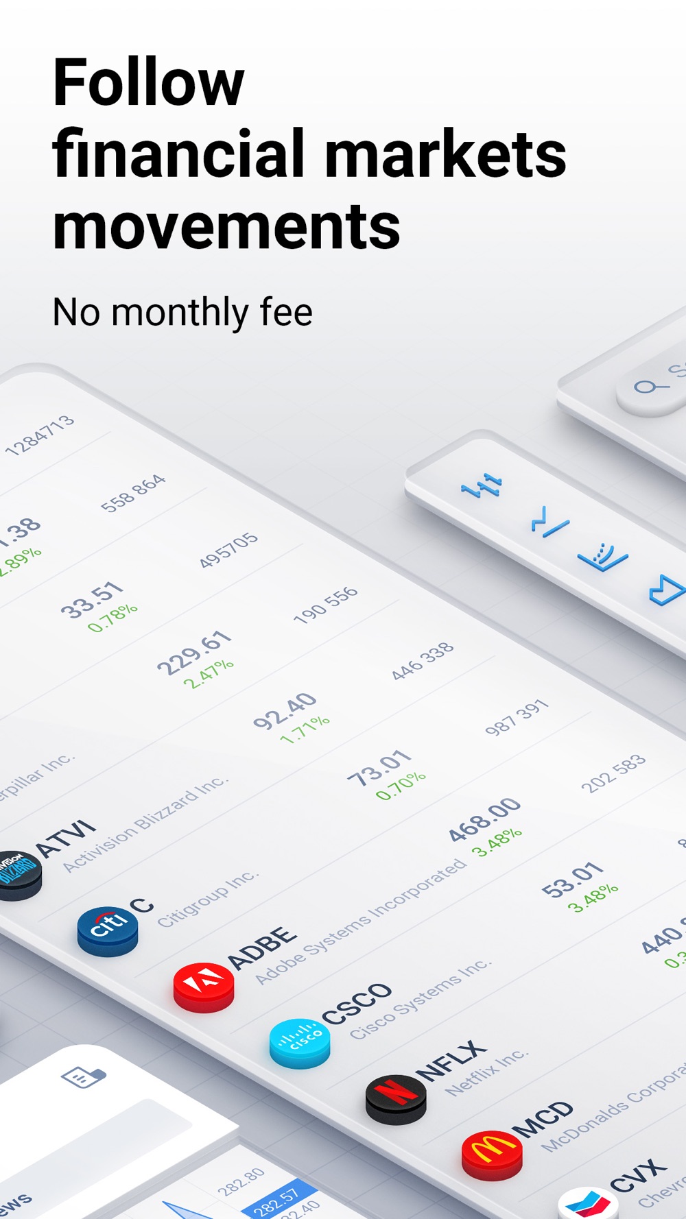 Invest through the RoboMarkets StocksTrader app which grants you access to the stock market and allows you to invest in stocks effectively and securely enjoying one of the lowest commissions among brokers on your iPhone device.