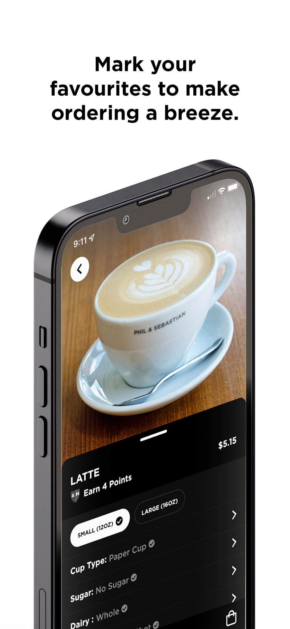 • Mark your favourite items for quick ordering on your busy mornings!
