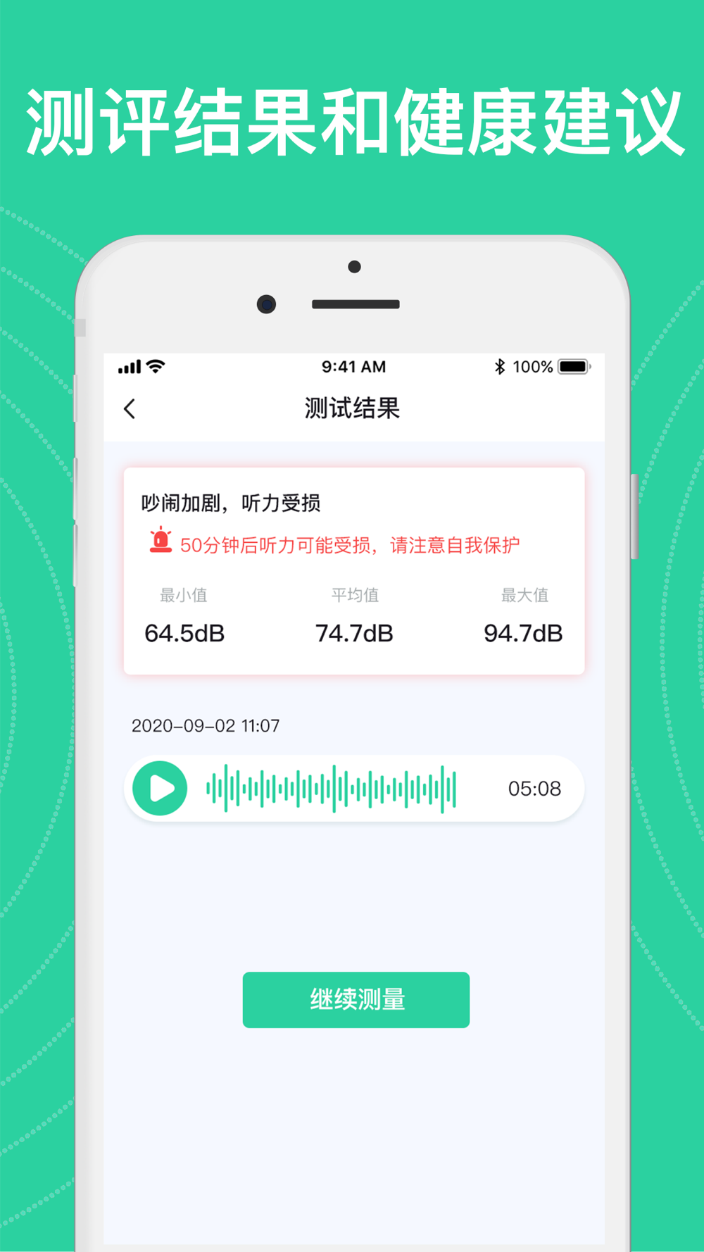 -高灵敏度、高精确度的测量结果; -简洁易用的用户界面设计; -根据环境噪音标准,实时显示当前环境对应噪音分贝等级; -记录测量历史录音,随时查询,取证无忧。