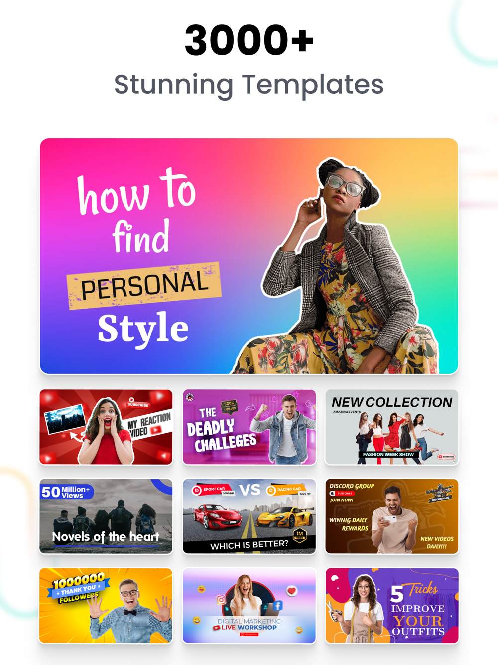 Choose from over 1000+ thumbnail templates and create your own thumbnails.
