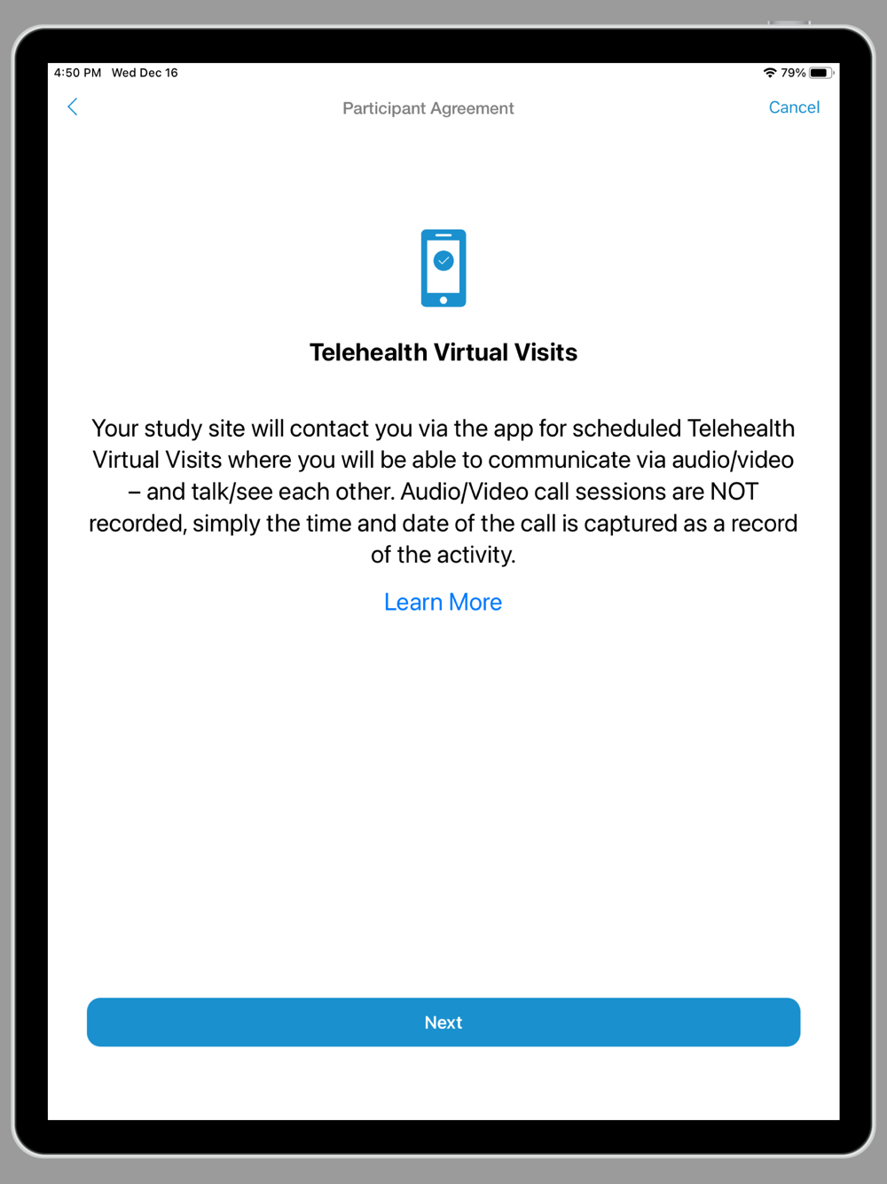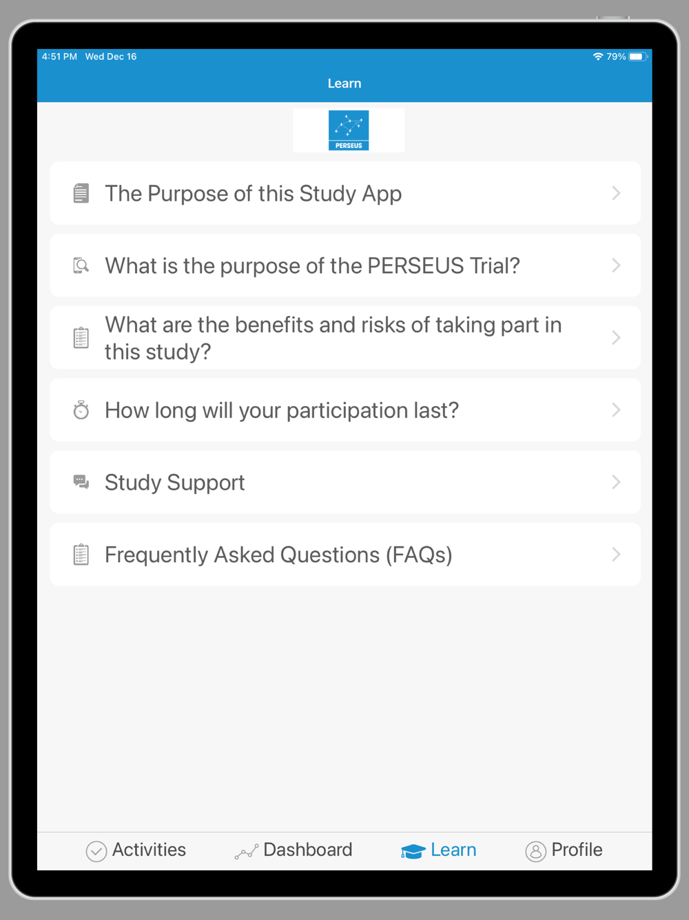 The Sanofi EFC16035 study app is part of the PERSEUS research study. The app is used to perform Telehealth virtual visits (video calls) with your study site. This app is for participants of this research study only.