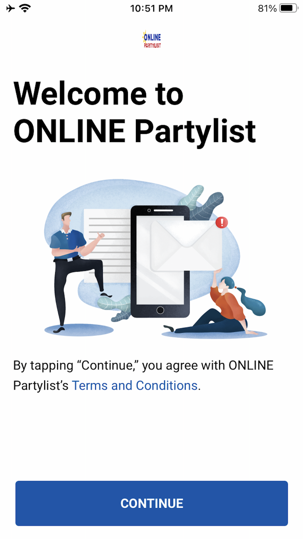 ONLINE Partylist ang opisyal na app para sa mga nais maging myembro ng ORGANISASYONG NAGSUSULONG NG LIBRENG INTERNET NGAYON SA EDUKASYON (ONLINE).