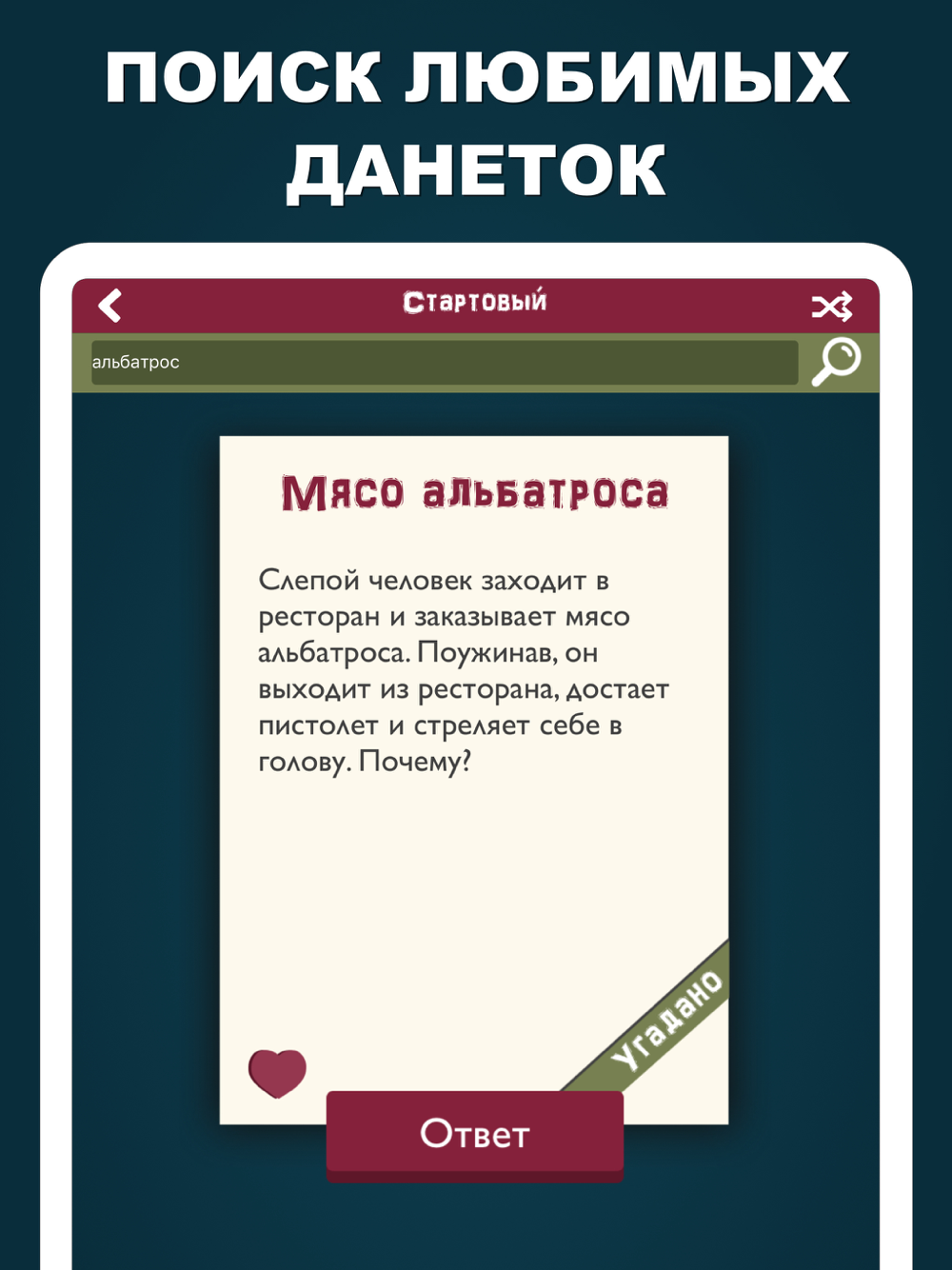 Любимые данетки можно добавлять в Избранное, чтобы потом быстро их находить.