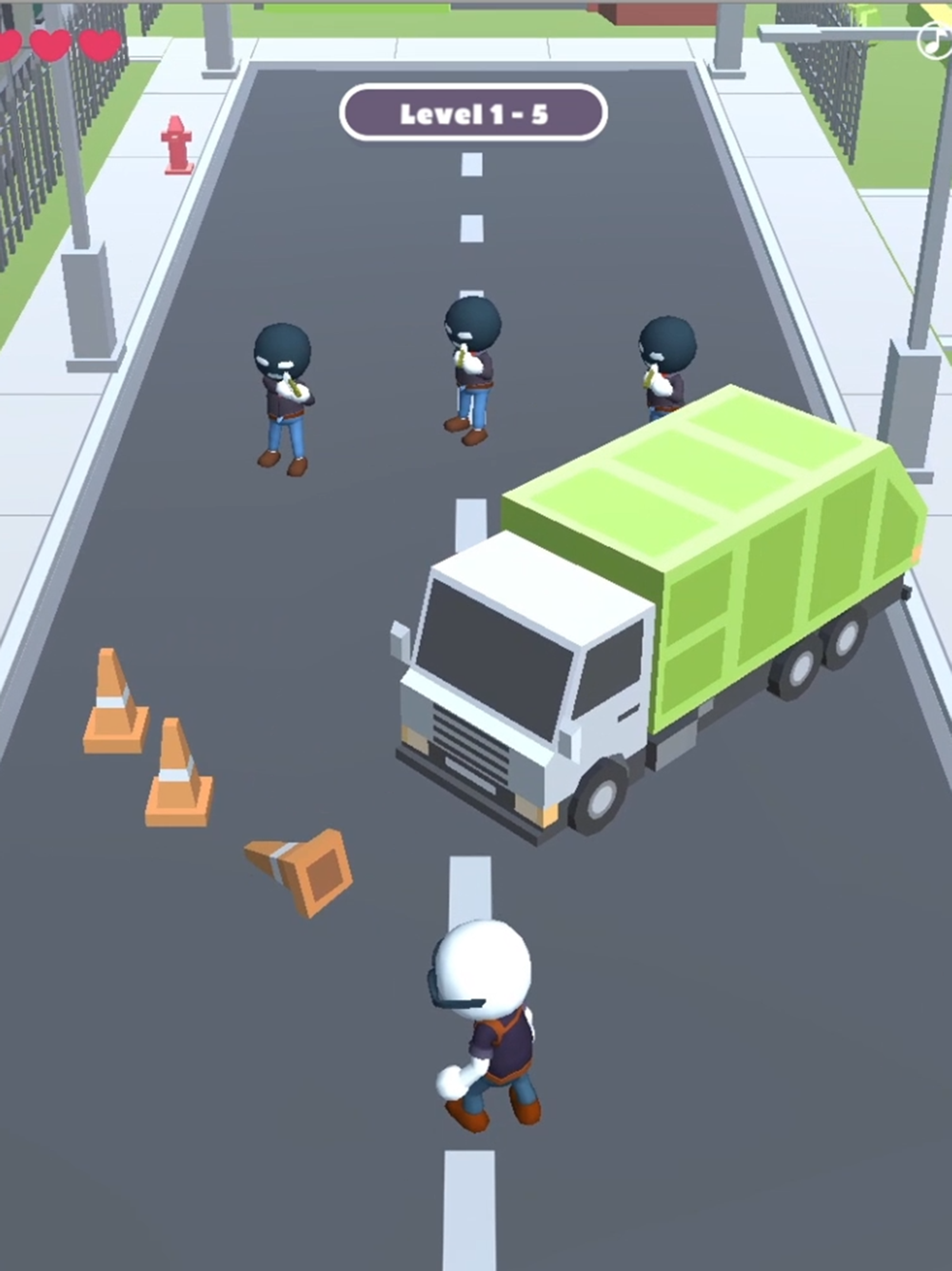 Draw a path to tell the hero where to attack. Find the best path to attack most enemies and without getting hurt. Make use of any object in the scene to attack. Beside attack the enemies directly, you can also crush them using vehicles, road blocks, etc. Use your imagination to fight the enemies.
