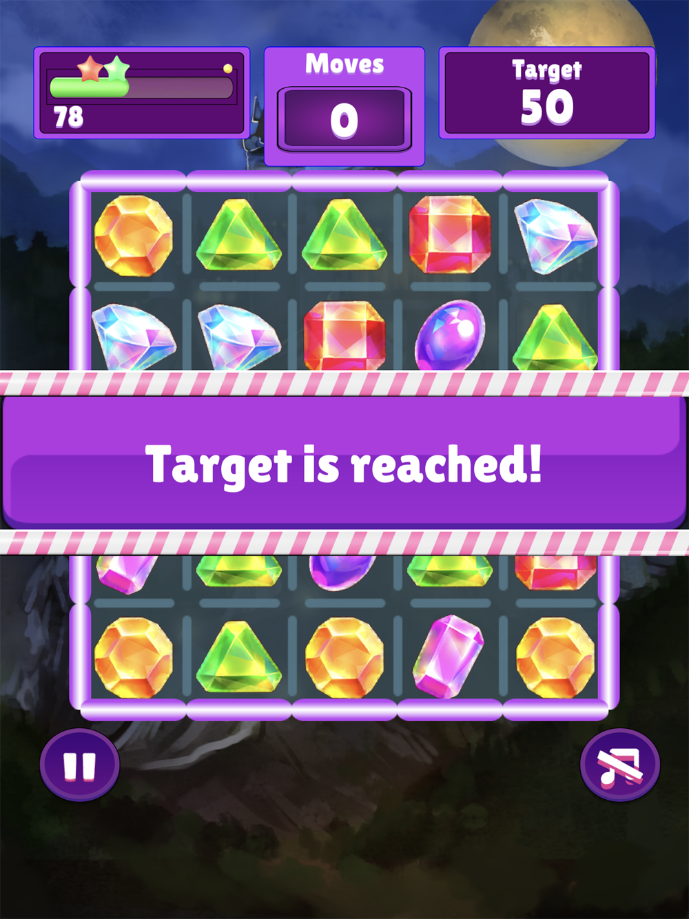 It's a simple match-3 game. 25 stages are available. Let's aim for star 3. High scores can be shared on Game Center.