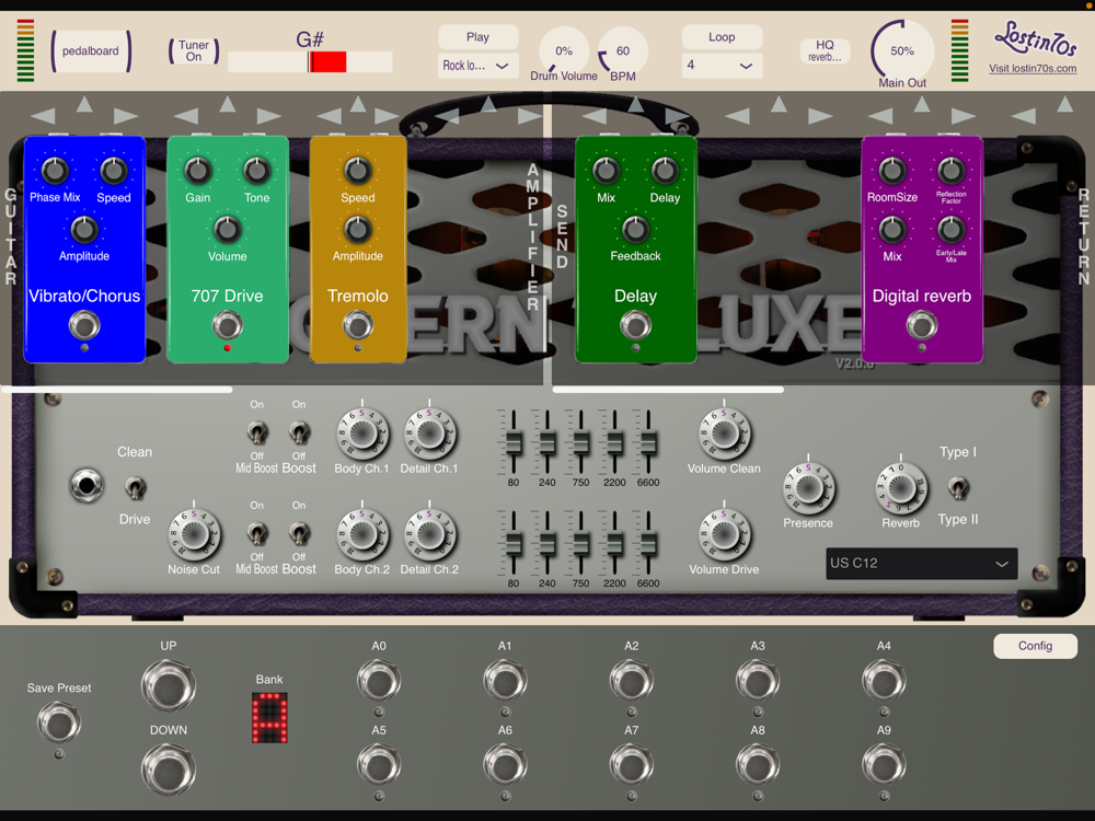 - A pedalboard with 8 super efficient stomps, no need to disconnect cables to test the positions of the stomps