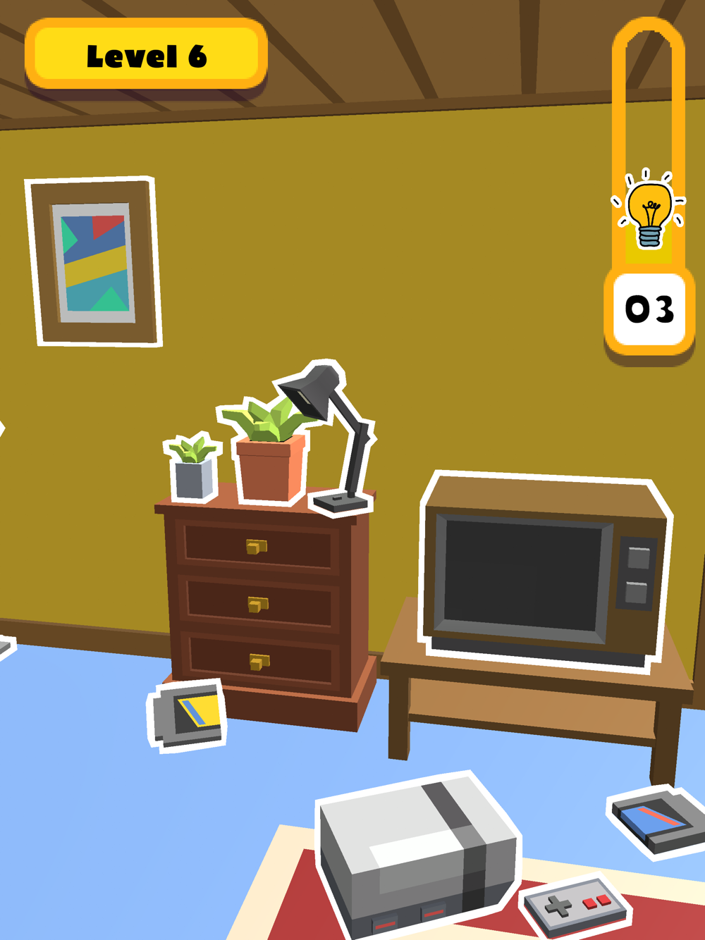 Turning lights on and off can change something in a room. Try to memorize each object in the room and find the lost ones.