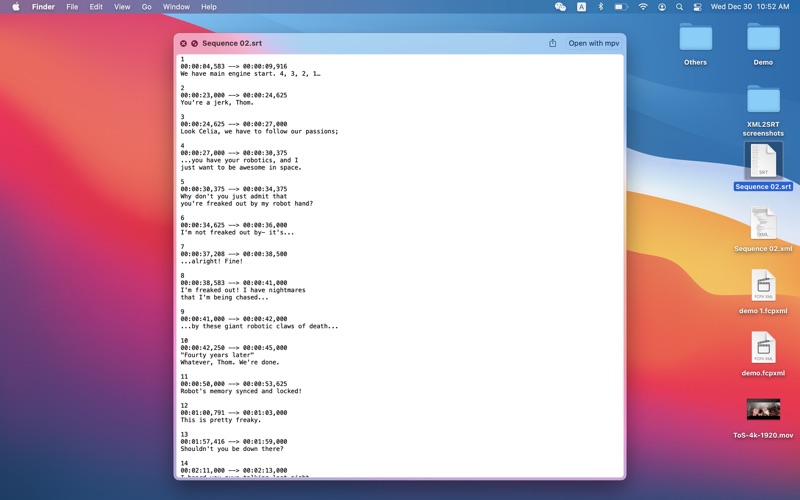 5. More XML formats with timecode will be supported in the future. If you have XML format with subtitles and timecode in it which you need to extract to SRT file, please send email to