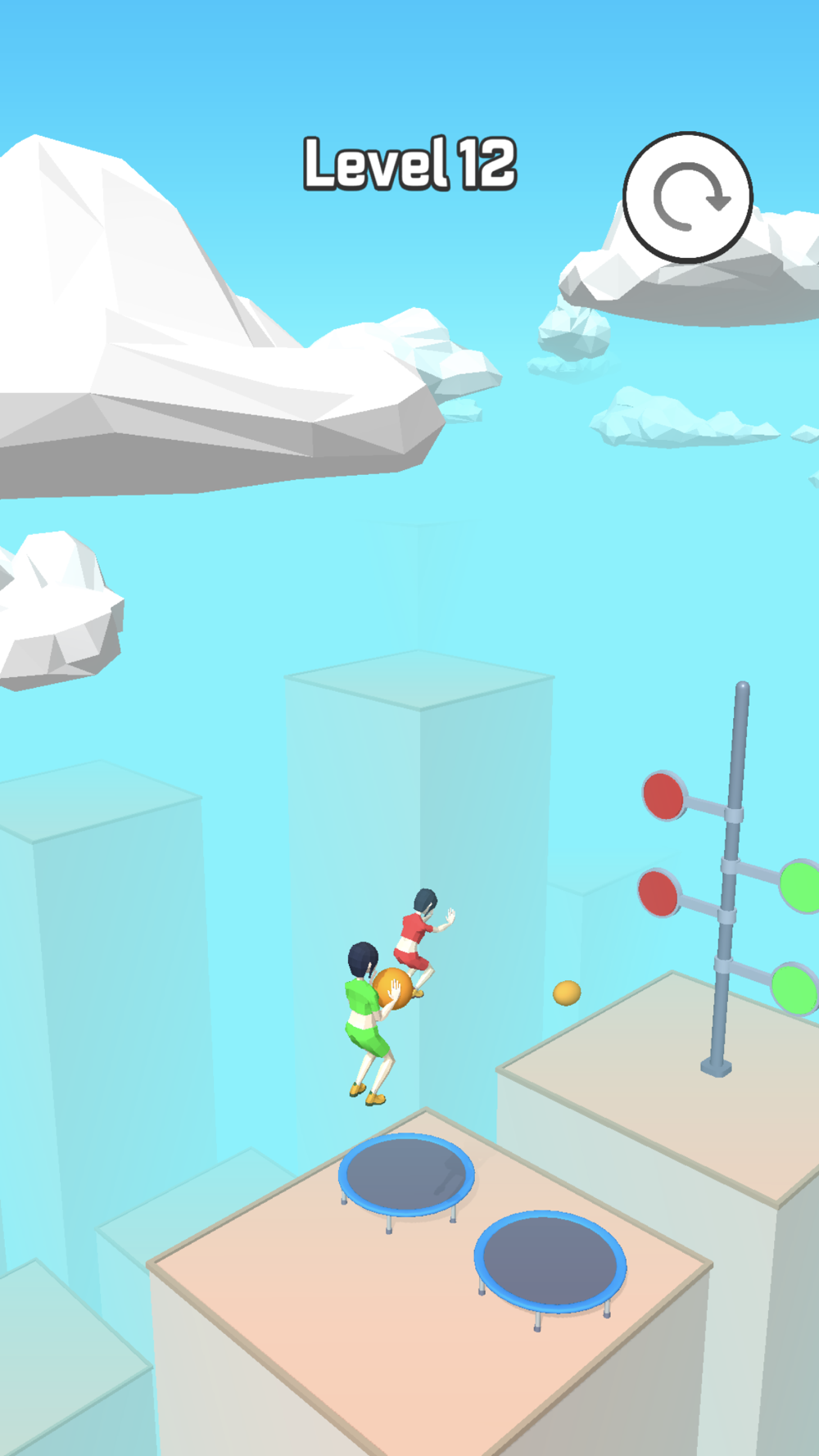 Shoot balls on the target! Flip them all before your opponent and move on to the next stage!
