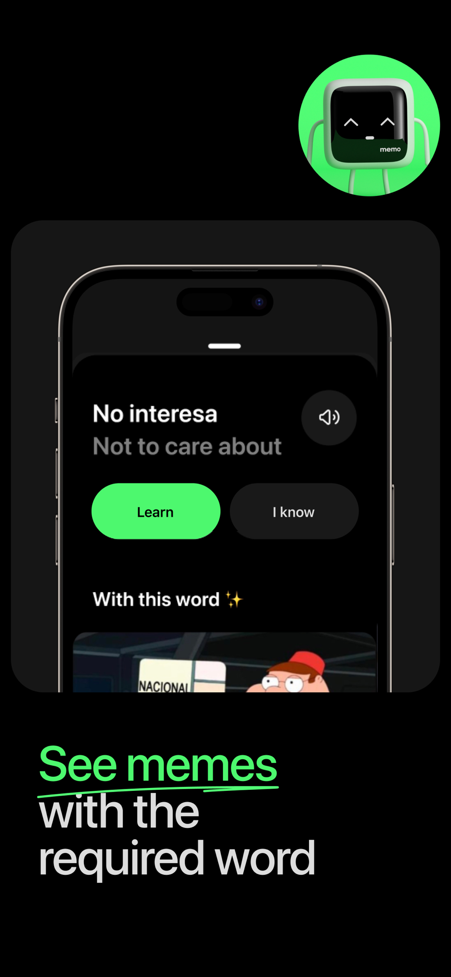 2. In addition to videos, we have an extensive collection of memes that work the same way. Tap on a word to see its translation and other contexts in which it is used. You can learn new words while having fun scrolling through hilarious memes.