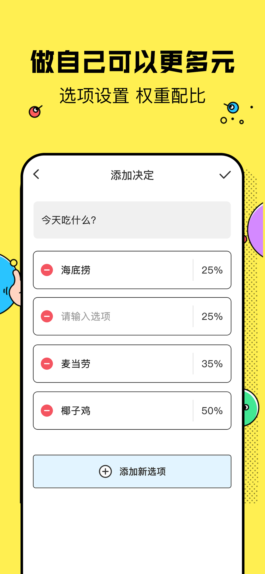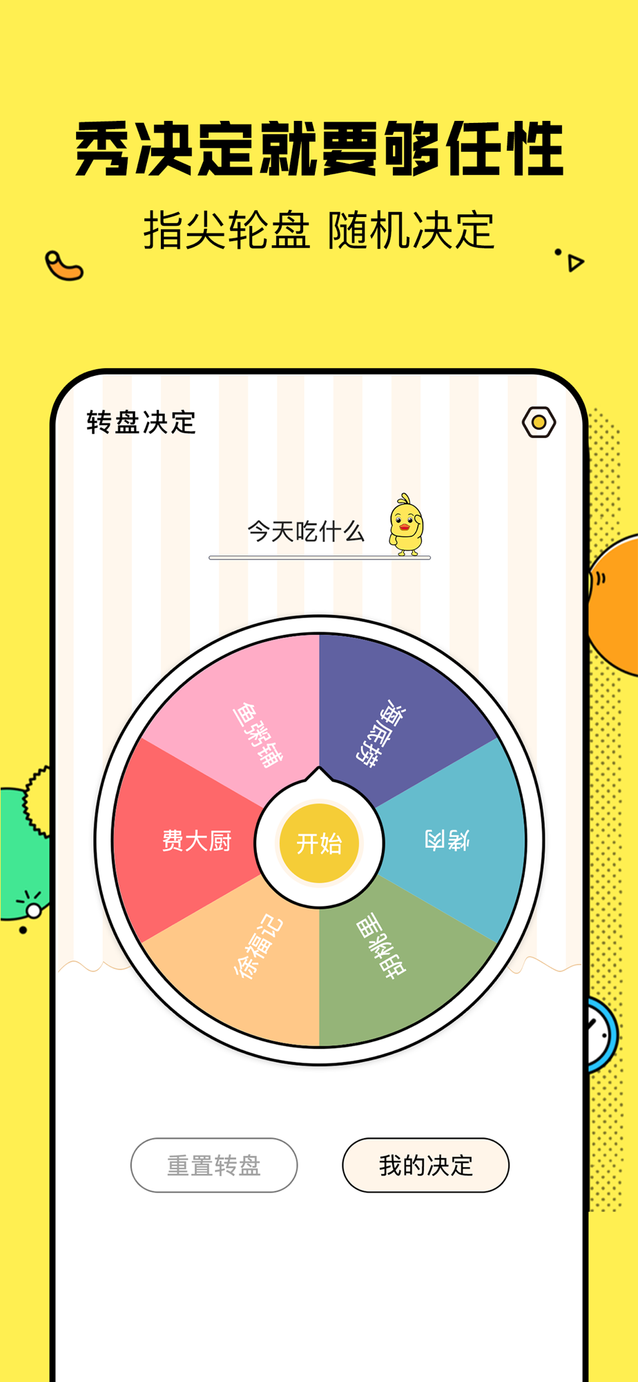 创建自己需要做选择的小决定,通过转盘模式进行选择,一键帮你做决定!