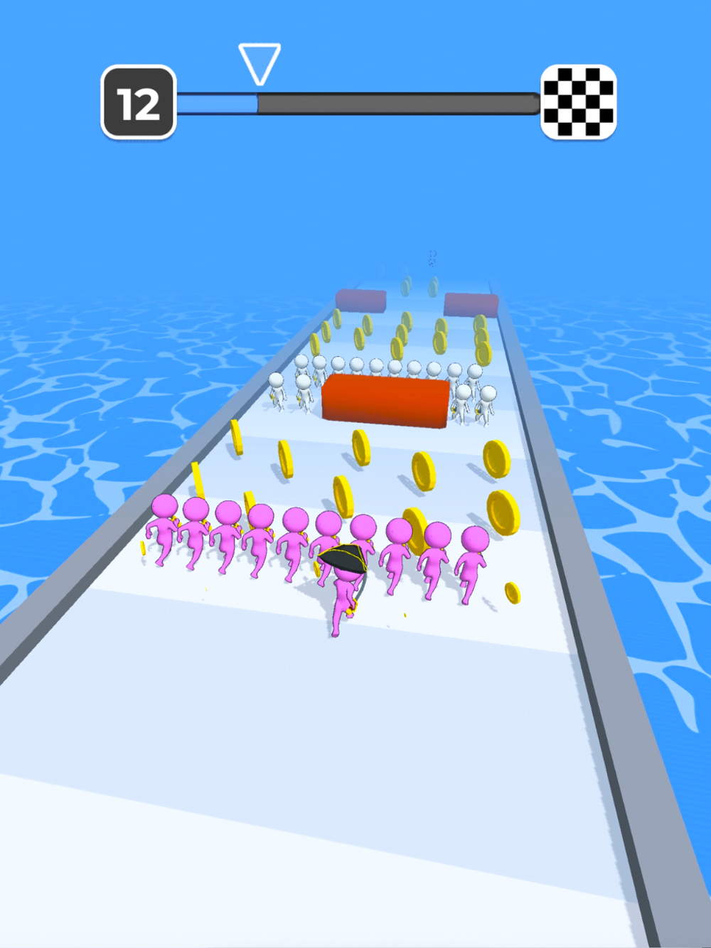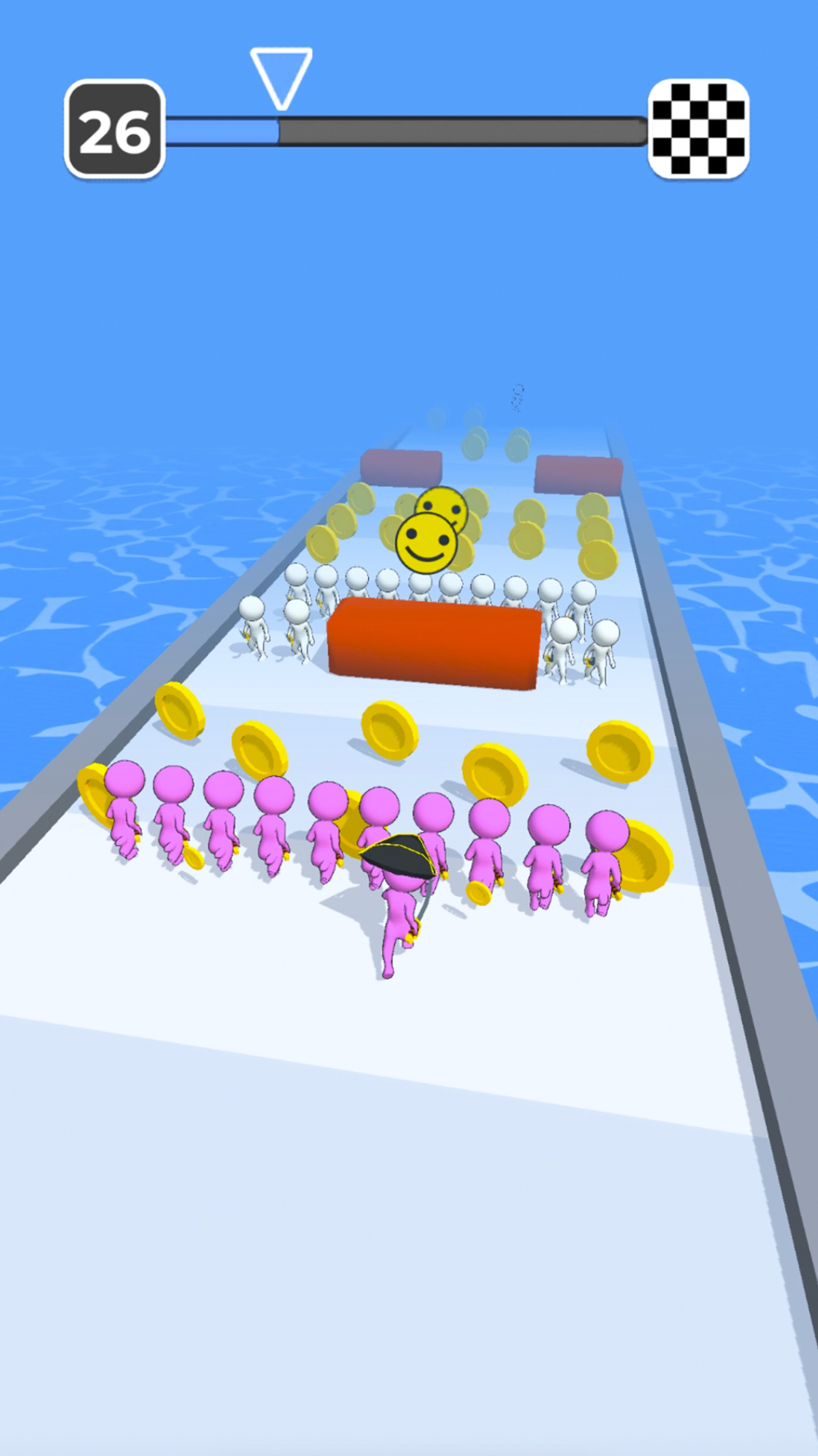 Run to the finish line, picking up teammates. Try to make it to the end without losing your team. Awesome battles in end of each rounds!