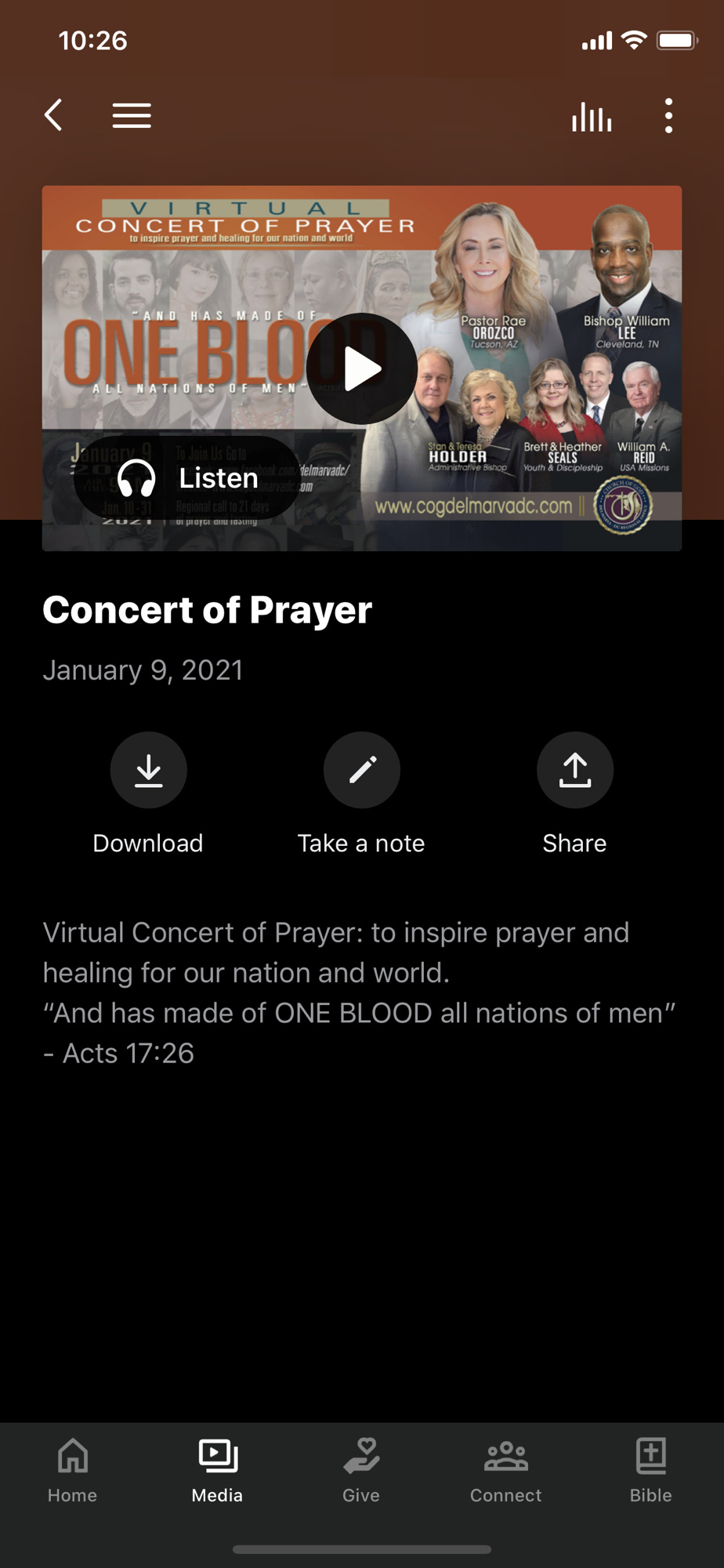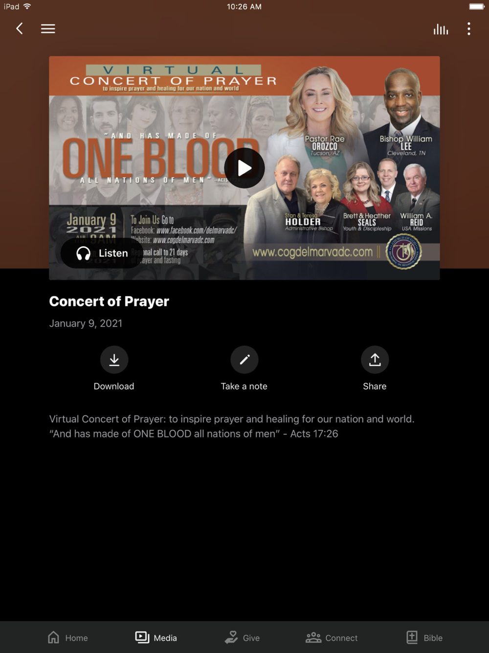 This app will help you stay connected with all regional events/personnel. With this app, you can: watch or listen to past messages; stay up to date with push notifications; share your favorite messages via Twitter, Facebook, or email; and download messages for offline listening.