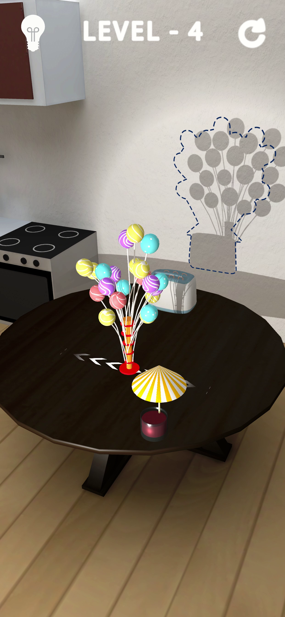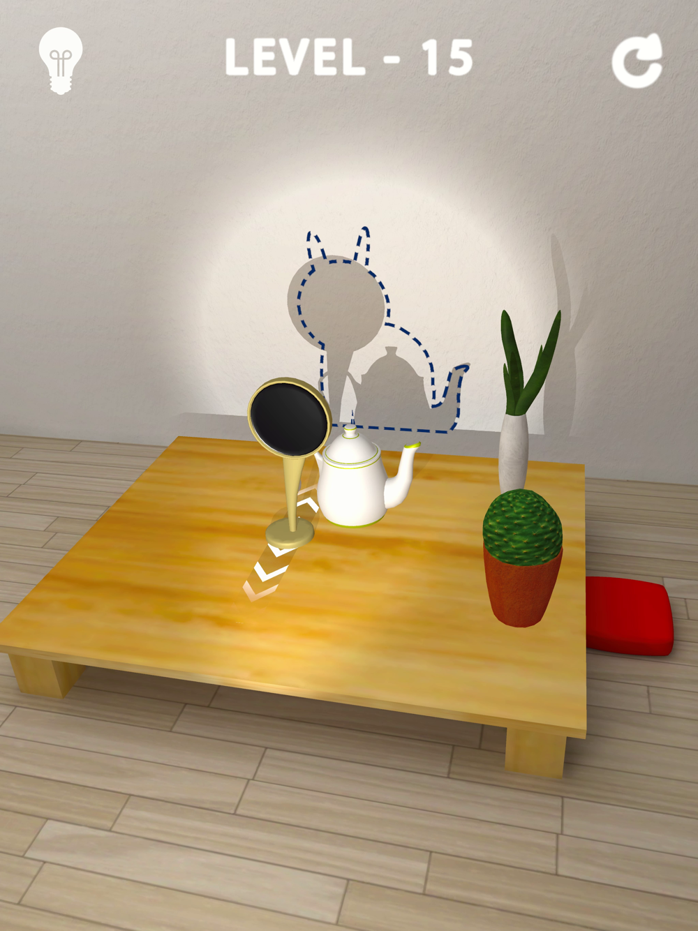 Move the objects to their respective positions to form the targeted shadow shape. Use your smart mind to make sure that the objects don't collide. Collision may cause to reset the level. After achieving the targeted shadow shape, you can see the particular shadows moving around.