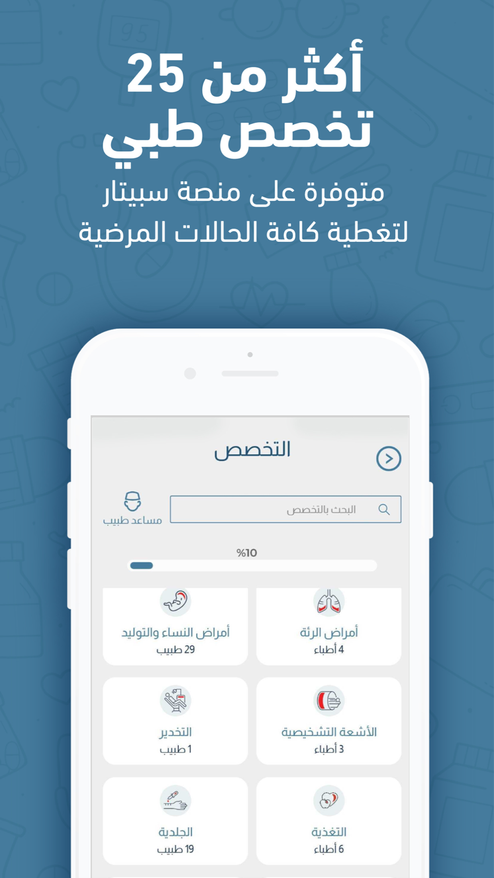 يمكنك عبر تطبيق سبيتار حجز استشارة عبر الإنترنت من منزلك، حيث يوفّر لك التطبيق إمكانية الاختيار بين أكثر من 35 تخصص طبّي مختلف، بالإضافة لأكثر من 1000 طبيب من داخل ليبيا وخارجها.
