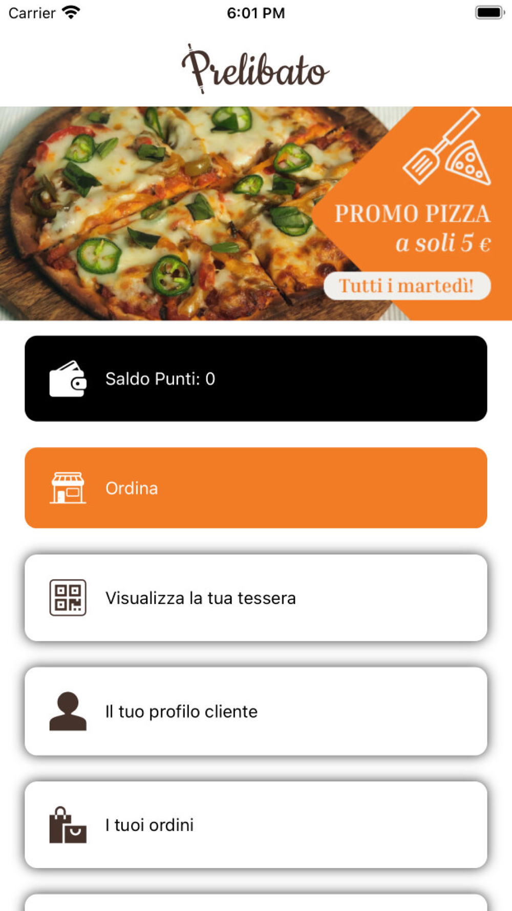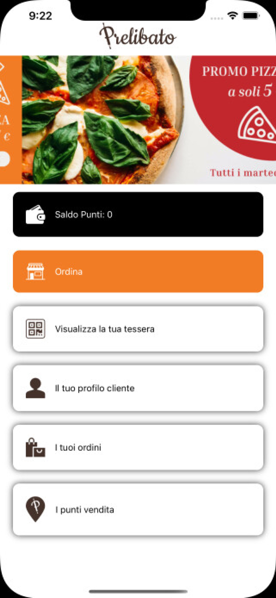 Con la nostra app puoi accedere come ospite o da utente registrato; registrarsi offre numerosi vantaggi: verificare il saldo punti, visualizzare la tessera e i dati personali insieme allo storico degli ordini.