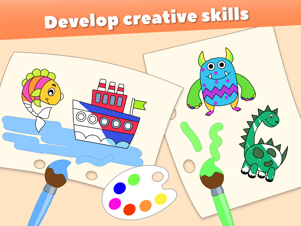 Educational Coloring Book is an addictive learning game for children of preschool age. Boys and girls like to draw and color pictures. Coloring helps to develop creative skills, imagination, attention, perseverance, teaches to concentrate on details, to distinguish object parts, while obtaining the final result increases self-esteem and confidence.