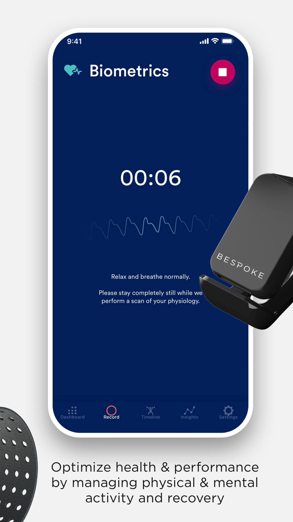 • Clinical-quality Biometrics such as heart rate, heart rate variability, spo2, respiratory rate, and more. All synced with Apple Health.