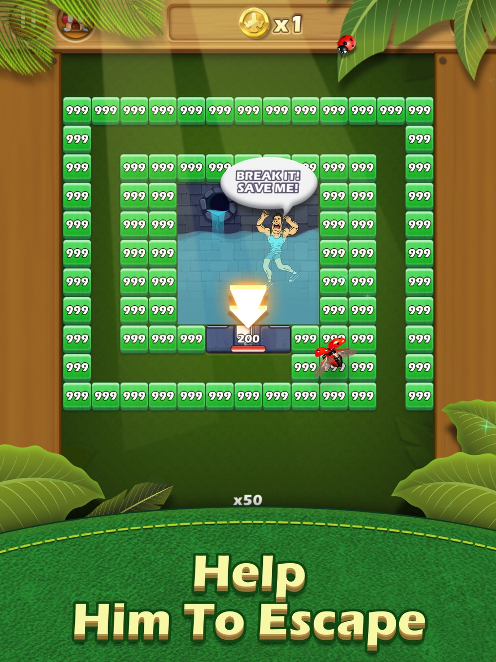 The man is trapped and drowning in the jungle, you need to crush and break all the bricks to help him escape. All you need to do is to break as many bricks and blocks as you can at once to earn gems and pass levels in this fast-paced brick ball crusher game.